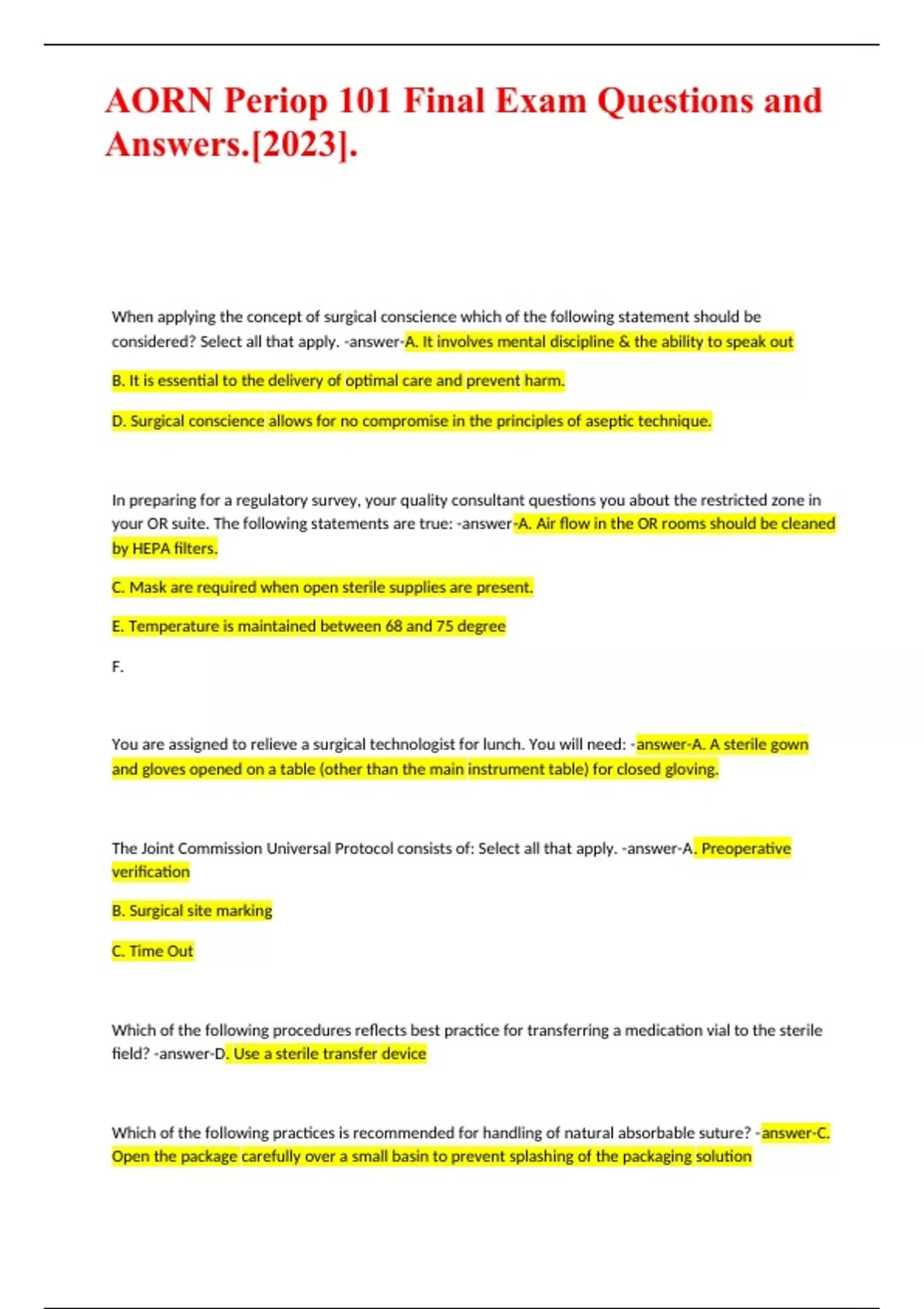 AORN Periop 101 Final Exam Questions and Answers.[2023].