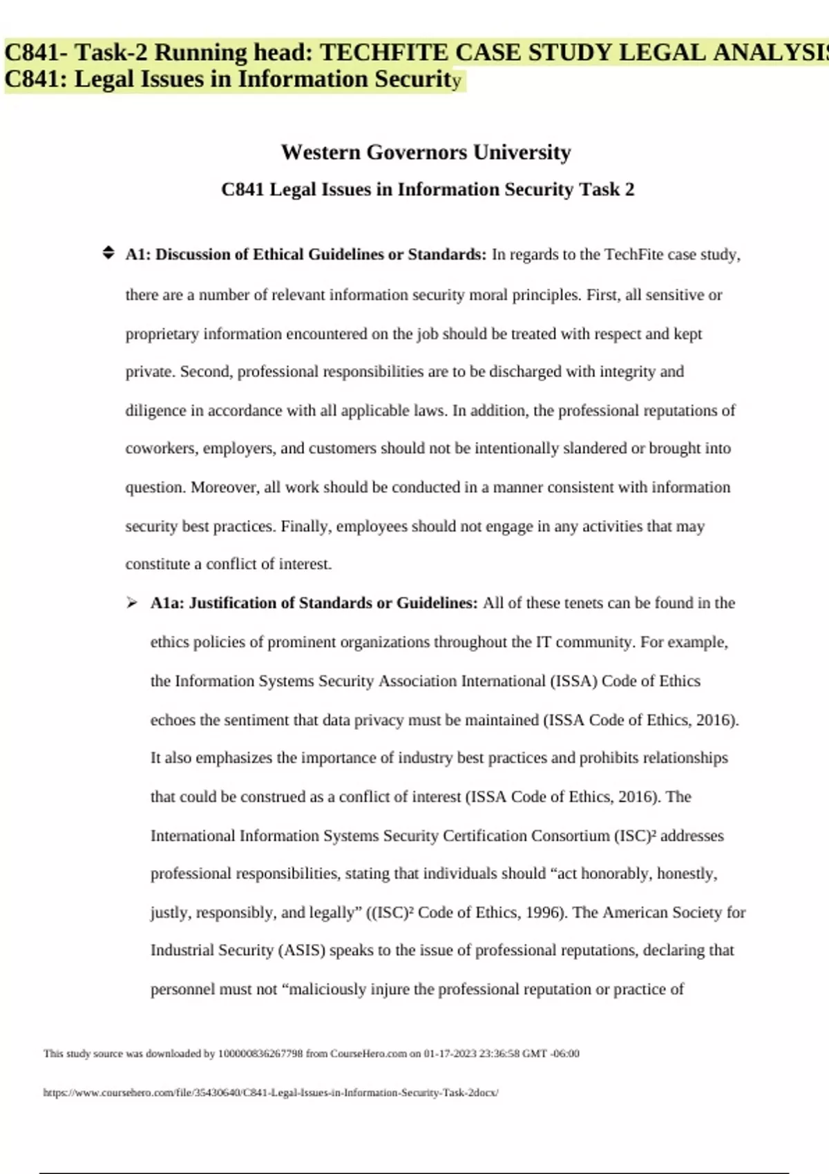 B1: Information Security Policies Intellectual Property Policy: In order for a company to protect its proprietary information and that of its customers, a strong intellectual property policy is vital. It should clearly dictate the company’s expectations, such as how private information can be used, whom it can be shared with, and where it should be stored (Saha, n.d.). In addition, the policy should also address how this information is to be secured in order to protect it from internal and external attacks (Saha, n.d.). Addressing these factors would have helped protect the data of TechFite and its clients from unauthorized access and disclosure. Two-Factor Authentication: There are three types of credentials that can used to perform authentication: something you are, something you have, or something you know (McElroy, 2015). Two-factor authentication requires credentials from two of these categories be used in conjunction to enhance security (Rosenblatt & Cipriani, 2015). One of the most common examples of this is the use of a smart card (something you have) and a PIN (something you know). This policy would have deterred the use of dummy accounts by the BI Unit and prevented Carl Jaspers from using the email accounts of former employees. B2: SATE Key Components: The first component of any successful SATE program is awareness. The purpose of this phase is to bring attention to the importance of security and demonstrate how to recognize and respond to IT security concerns. This is followed by training, which begins with security basics and literacy for all users involved with IT systems. Individuals will then be provided additional specialized training based on their functional roles and responsibilities relative to IT systems. IT security specialists and professionals will be provided education and professional development opportunities such as college programs and certification tracks in order to integrate “all of the security skills and competencies of the various functional specialties into a common body of knowledge” (Wilson & Hash, 2003, p. 9). B2a: SATE Communication: A tiered approach should be employed to maximize the program’s effectiveness. The first step will be yearly, in-person training that explains the threats to Tech Fite’s information security, and demonstrates how to recognize and report these activities. This ought to be supplemented by sending the staff monthly security tips to notify them of new developments, and to keep information security at the forefront of their minds (Patrick, 2017). Finally, threat emulation tools should be used to determine the effectiveness of the training by observing how employees respond to simulated security incidents (Patrick, 2017). Based on the results, individuals can be enrolled in additional training if necessary. Varying the time, delivery method, and content of training in such a manner will help to prevent the development of an apathetic attitude towards the subject.
