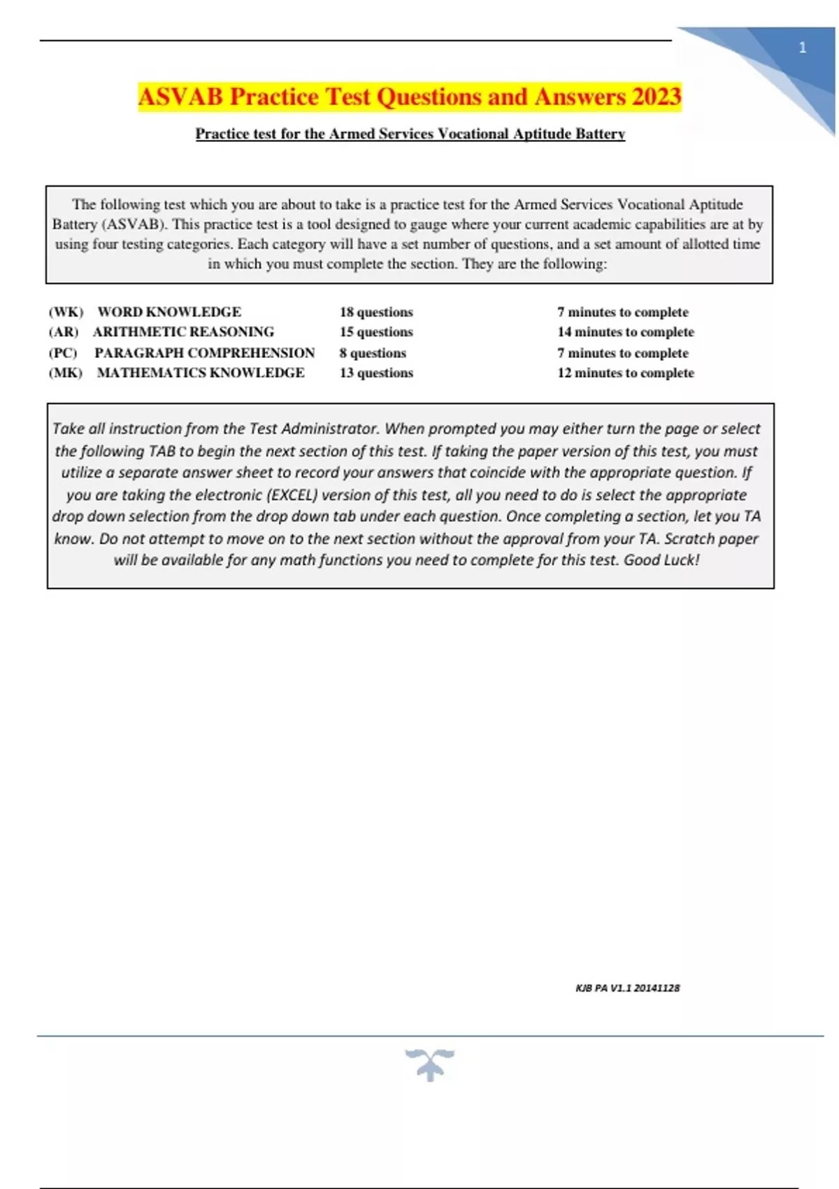 Real ASVAB Tests!!! Questions and correct Answers 2023