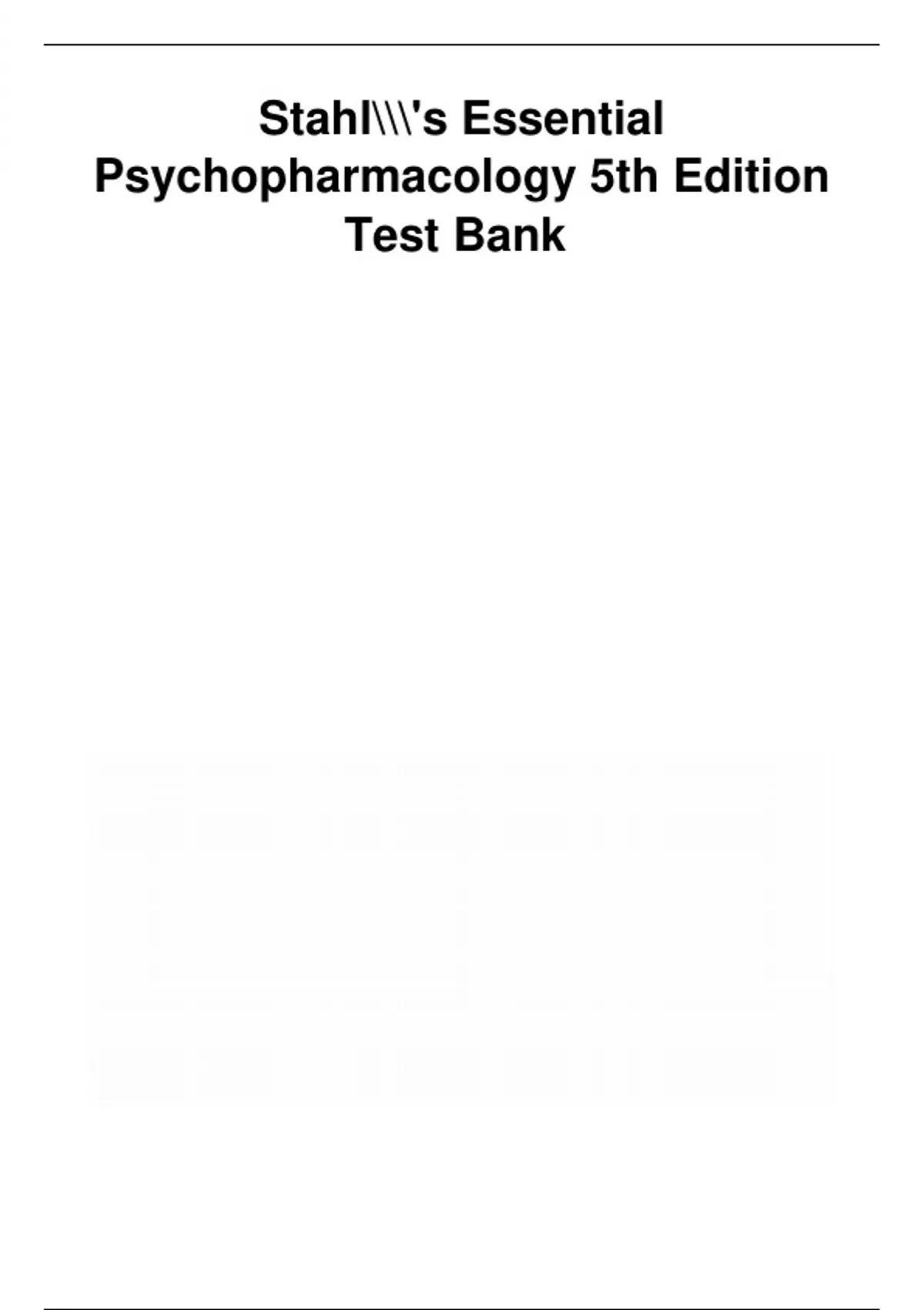 Stahl’s Essential Psychopharmacology 5th Edition Test Bank