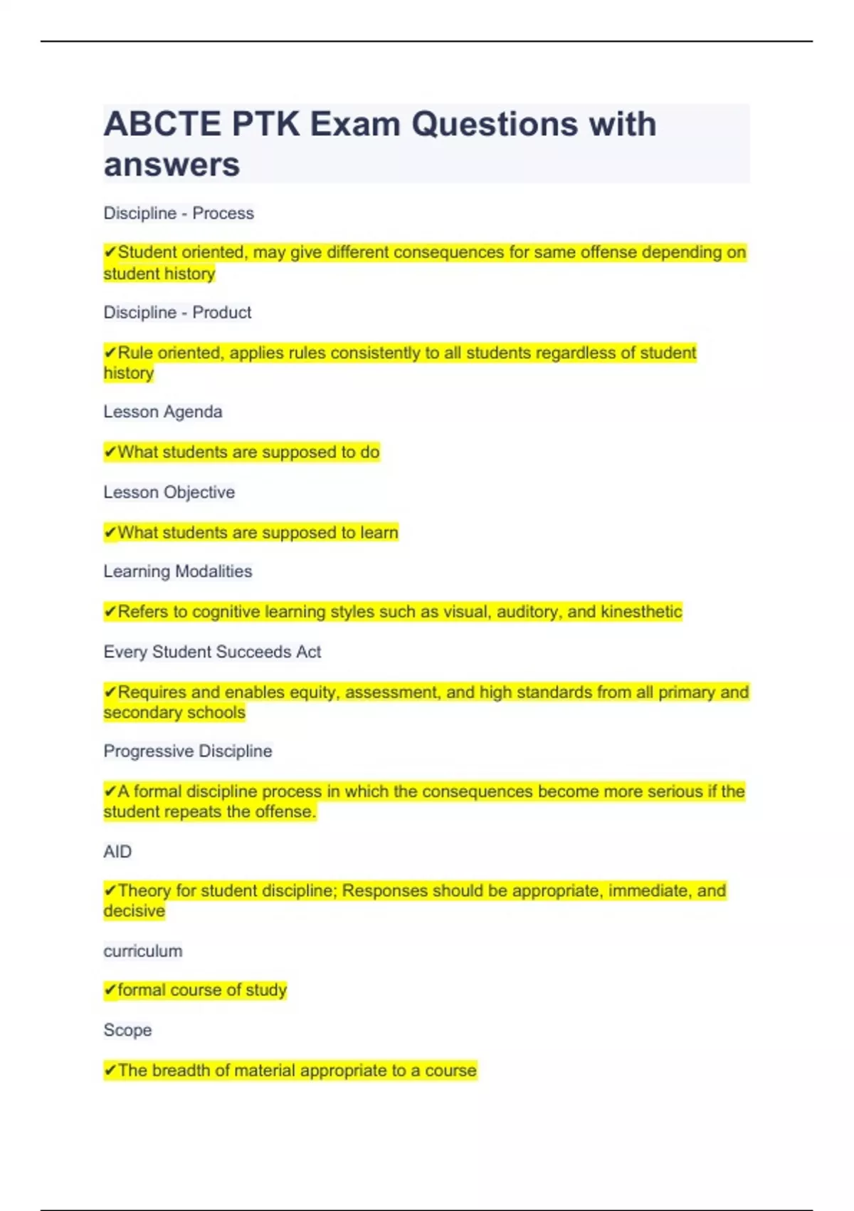 ABCTE PTK Exam Questions with answers