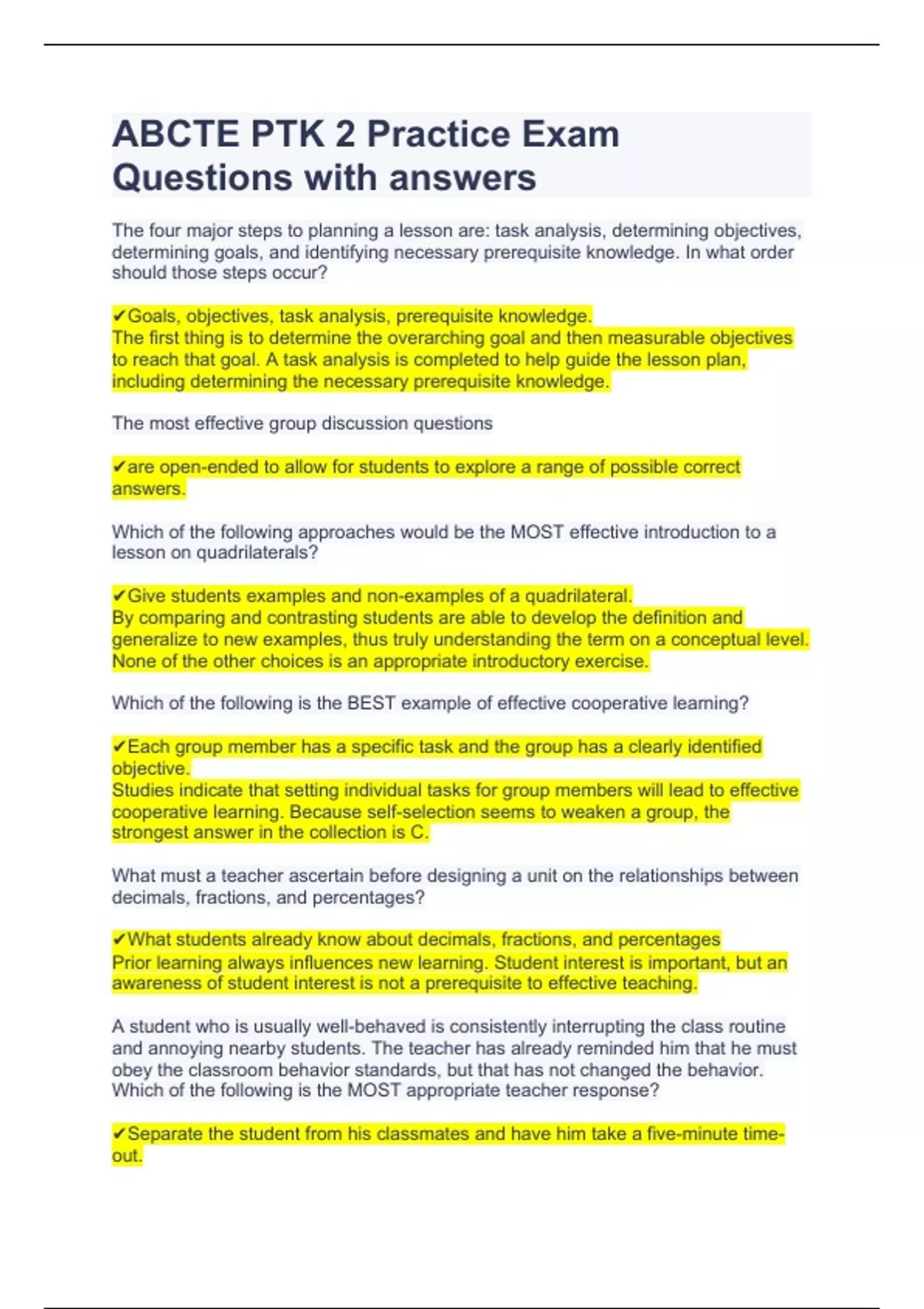 ABCTE PTK 2 Practice Exam Questions with answers.