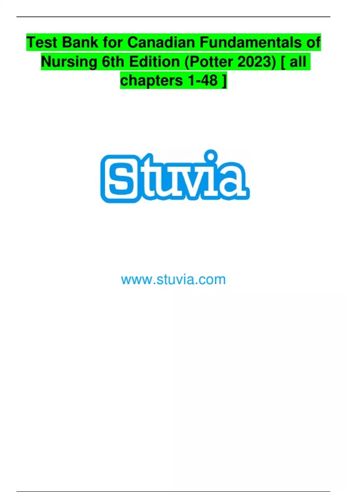 Test Bank for Canadian Fundamentals of Nursing 6th Edition (Potter 2023) [ all chapters 1-48 ]