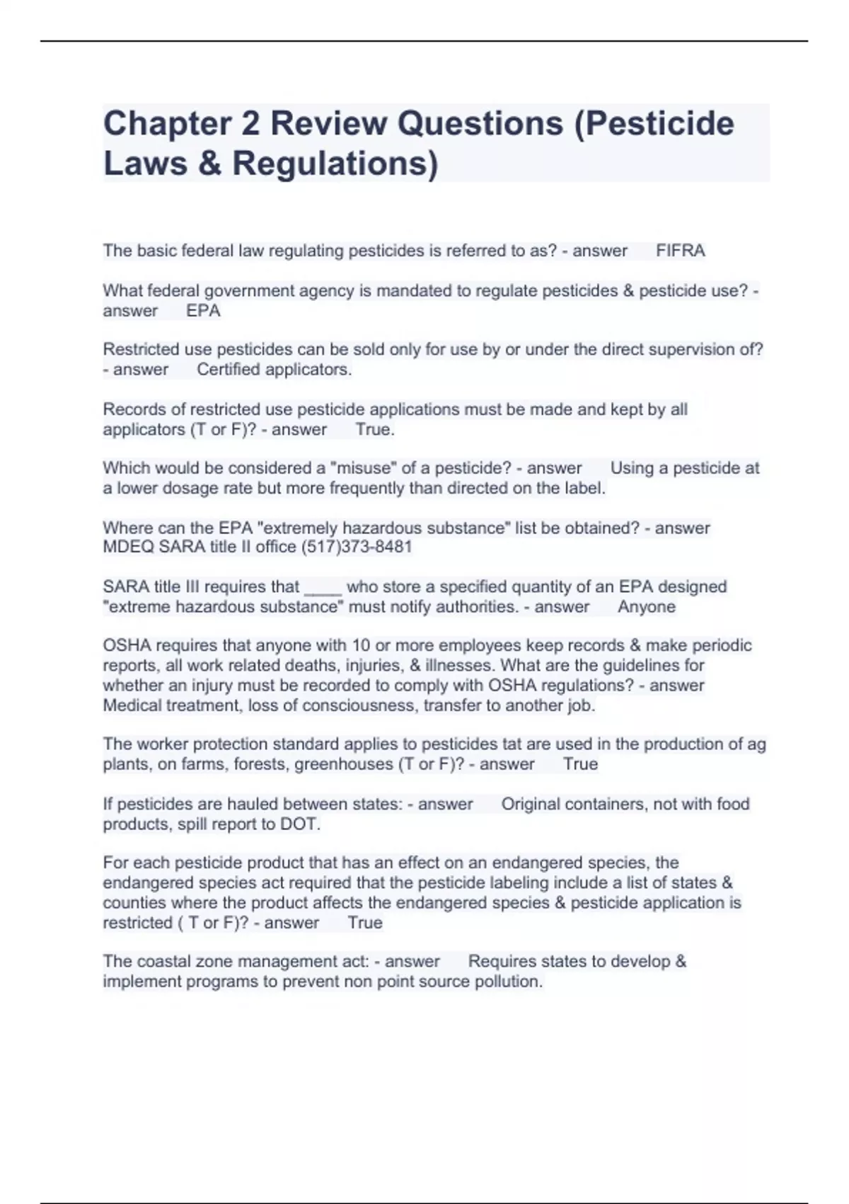 MICHIGAN PESTICIDE BUNDLE SET ,FULLY SOLVED 2023