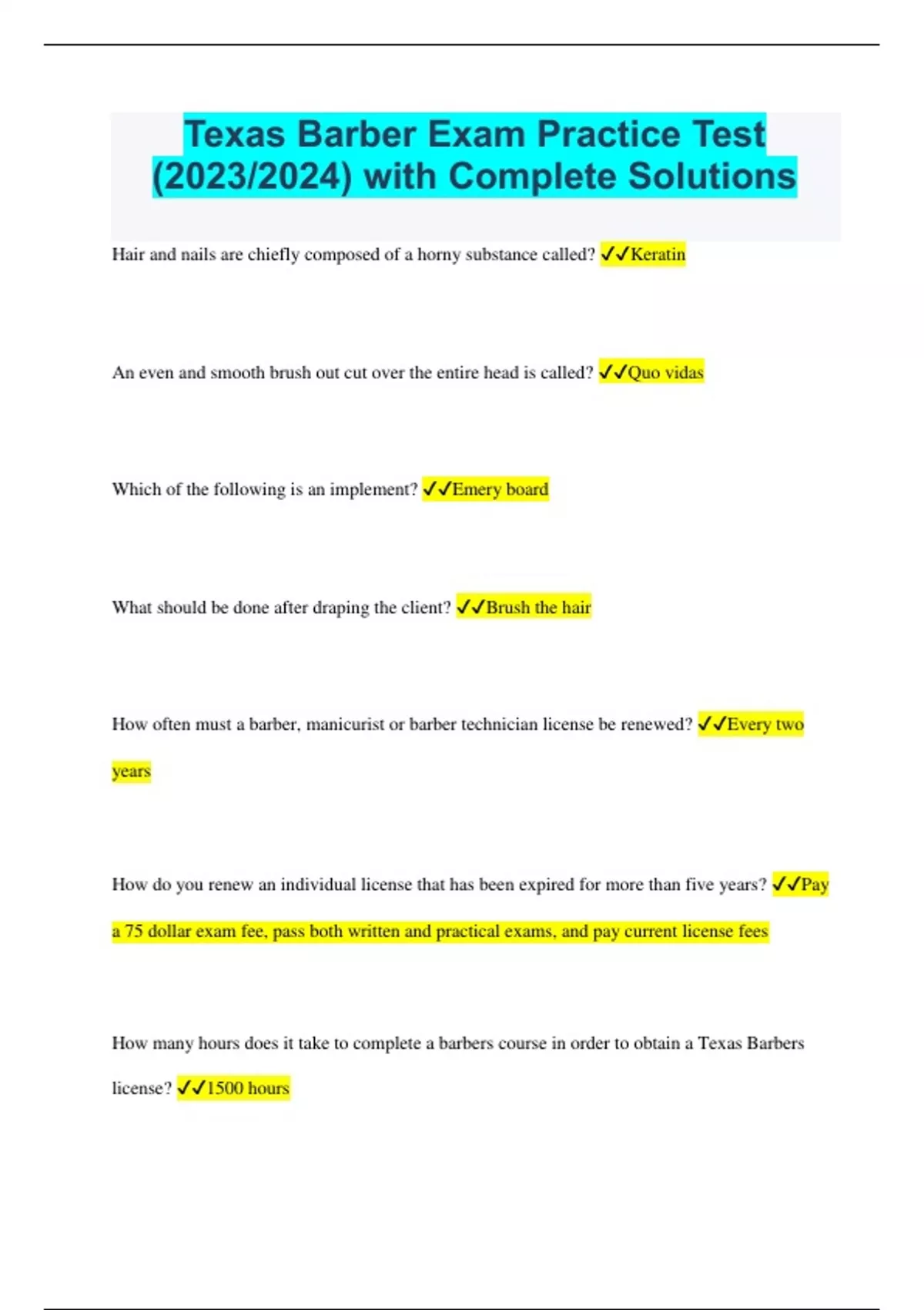 Texas Barber Exam Practice Test (2023/2024) with Complete Solutions