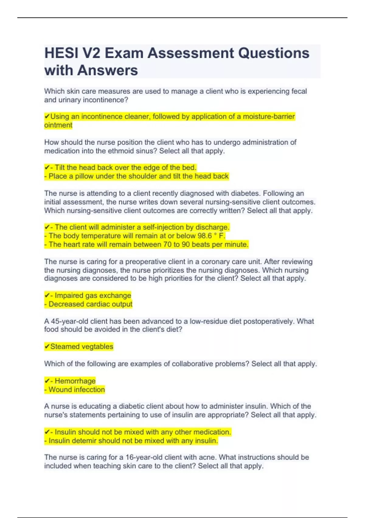 HESI V2 Exam assessment questions with answers
