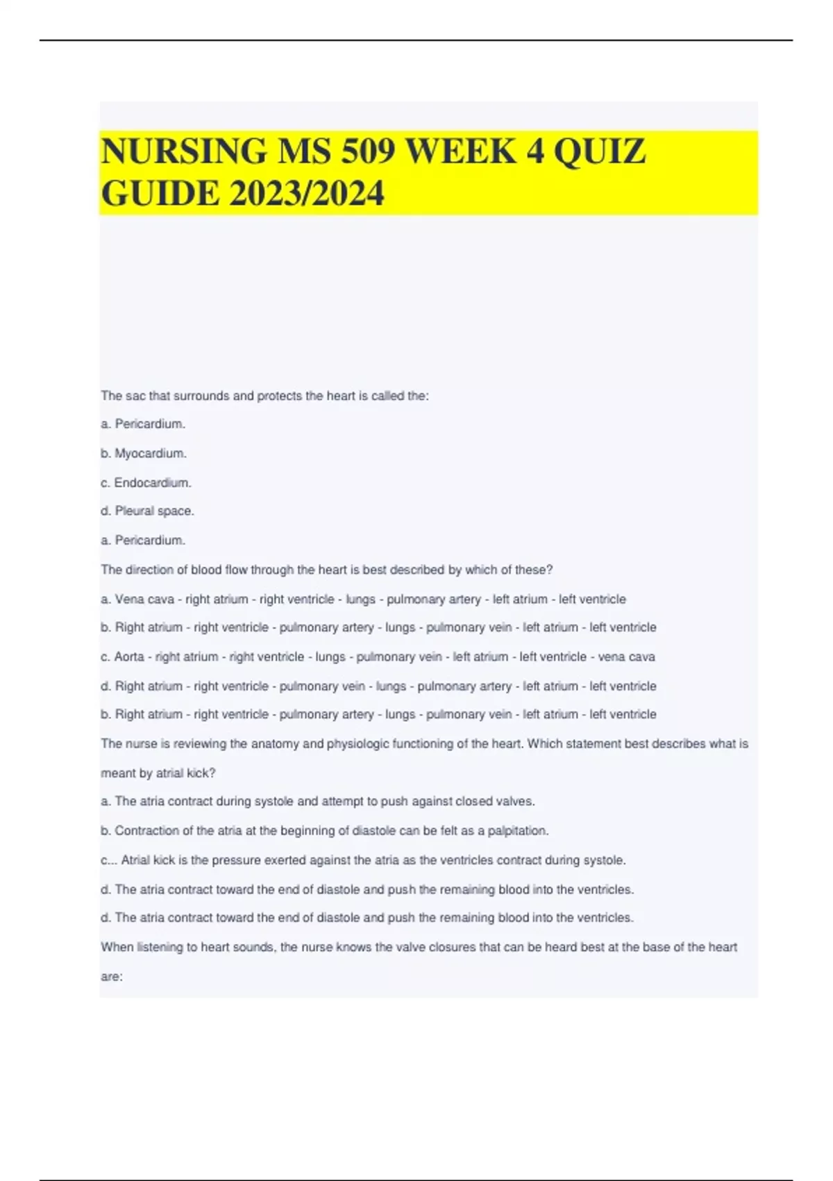 NURSING MS 509 WEEK 4 QUIZ GUIDE 2023/2024
