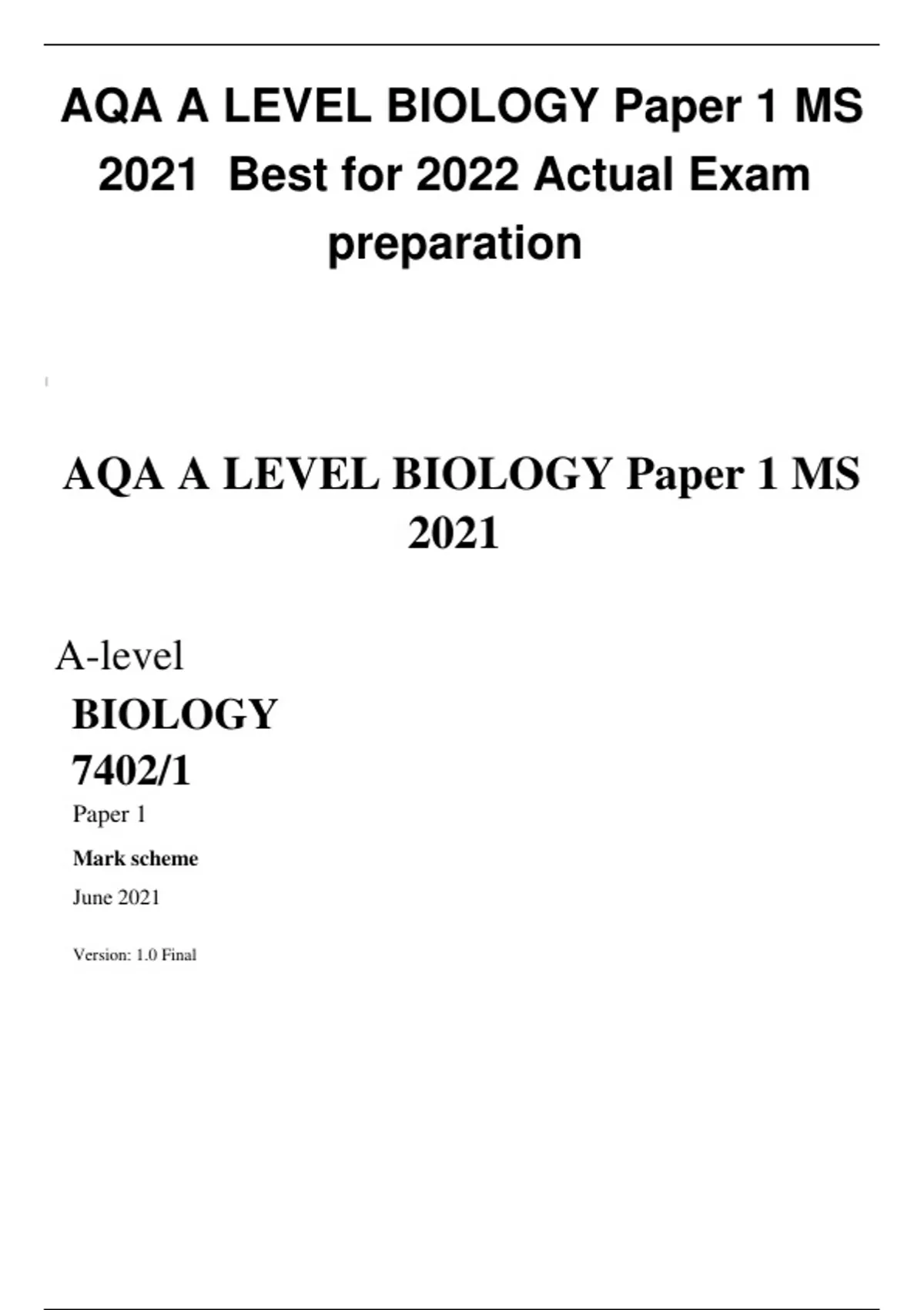 AQA A LEVEL BIOLOGY Paper 1 MS 2021 - Best for 2022 Actual Exam preparation