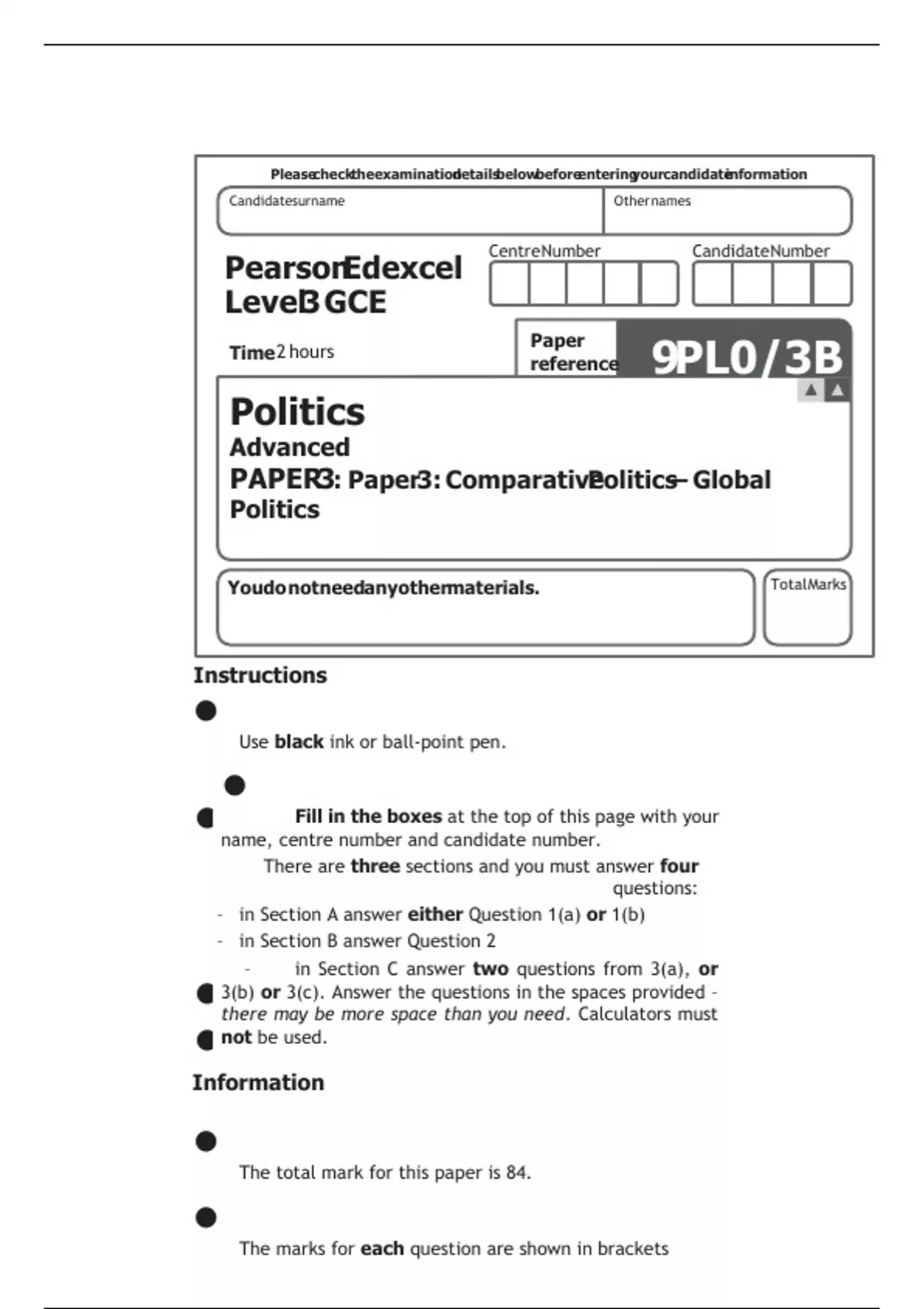 PEARSON COMPARATIVE POLITICS - QUESTION PAPER A LEVEL 2021