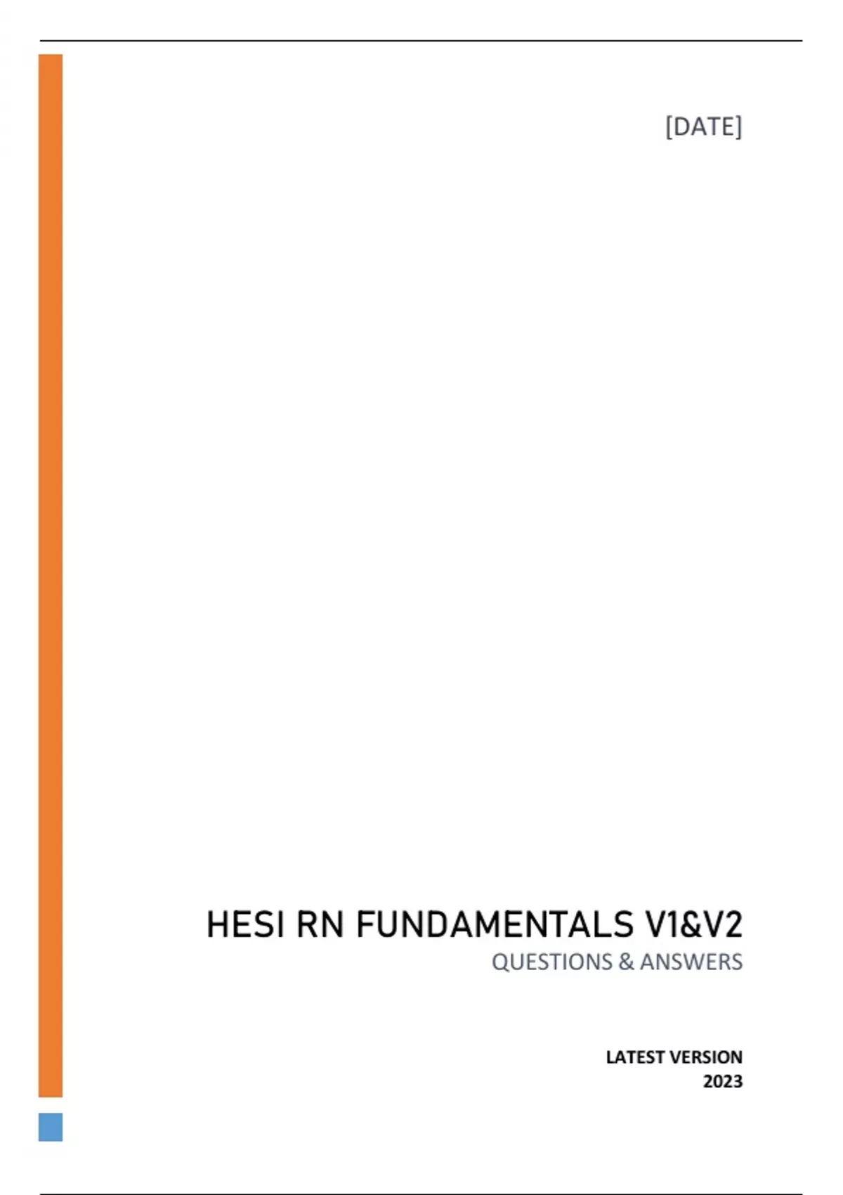 HESI RN FUNDAMENTALS V1&V2 EXAM - QUESTIONS & ANSWERS (RATED 98%) BEST VERSION 2023
