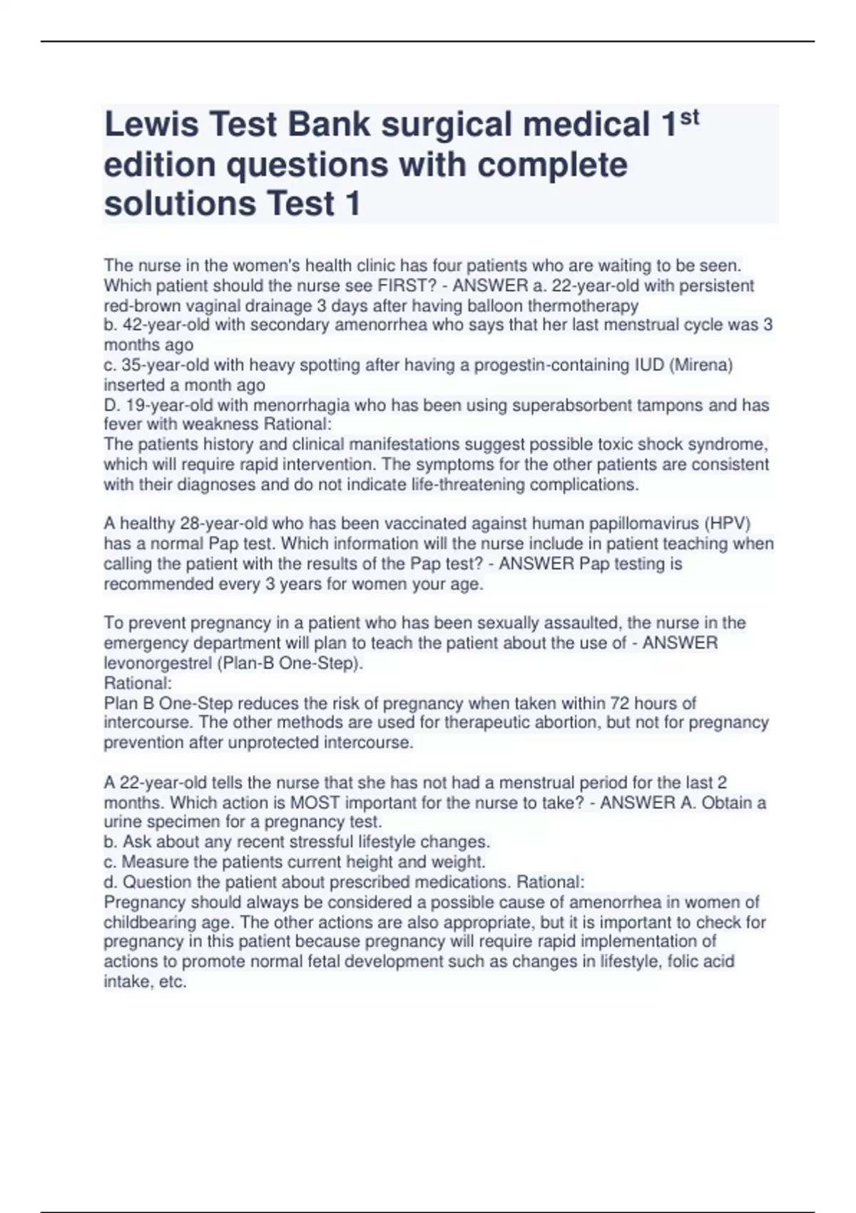 Lewis Test Bank surgical medical 1st edition questions with complete solutions Test 1