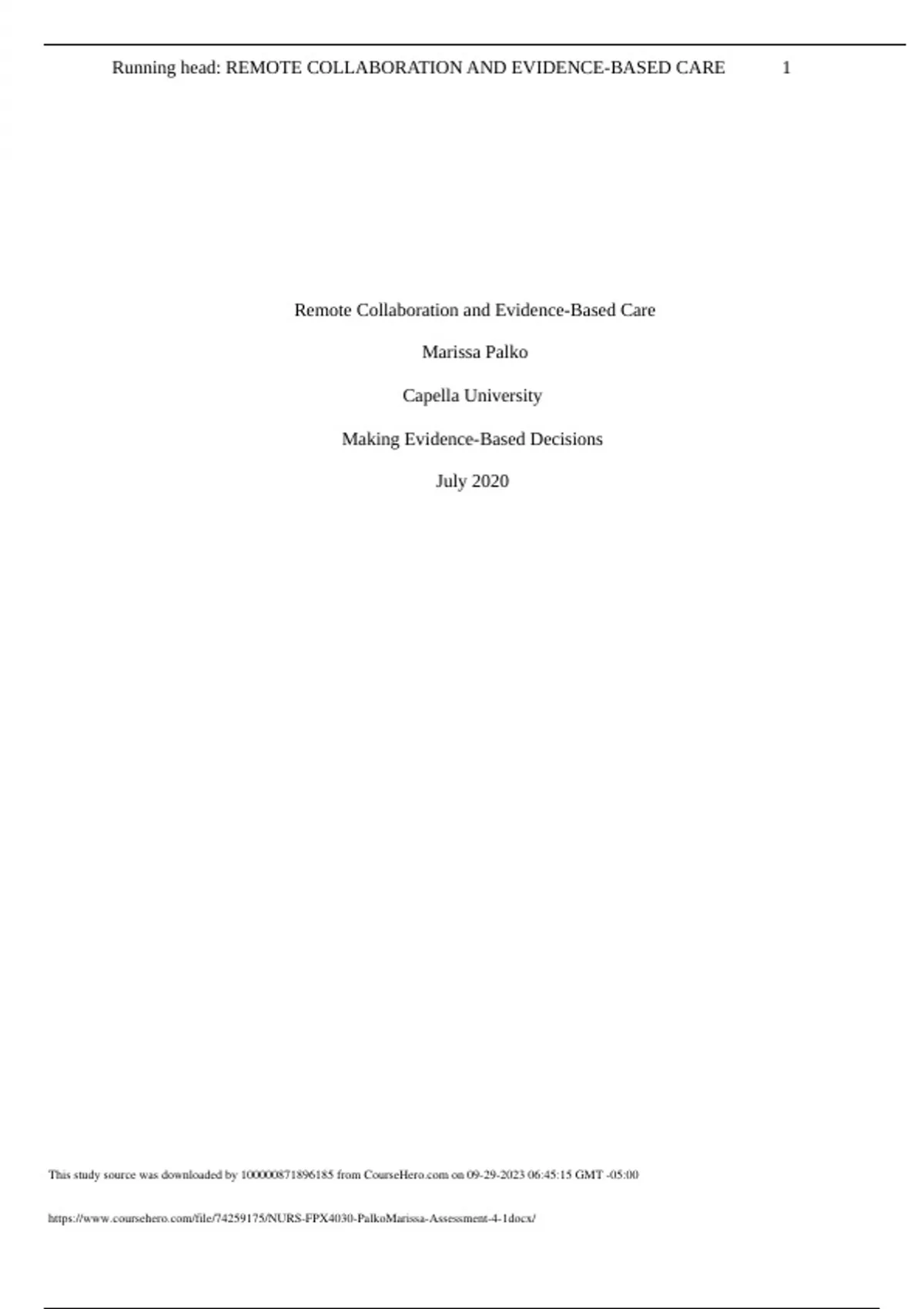 Remote Collaboration and Evidence-Based Care Marissa Palko Capella University Making Evidence-Based Decisions