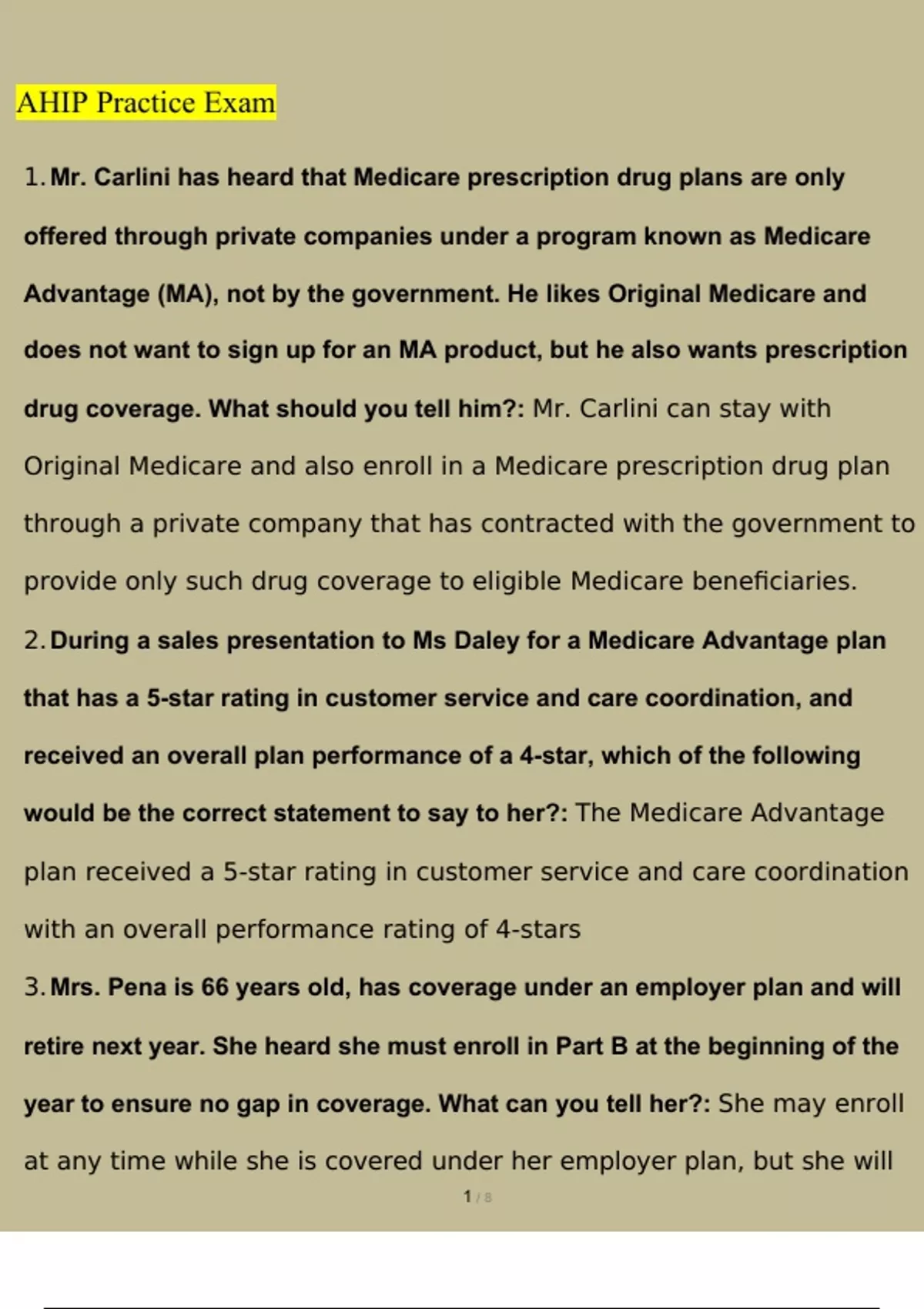 AHIP Practice Exam Newest Questions and Answers (2023 / 2024) (Verified Answers)