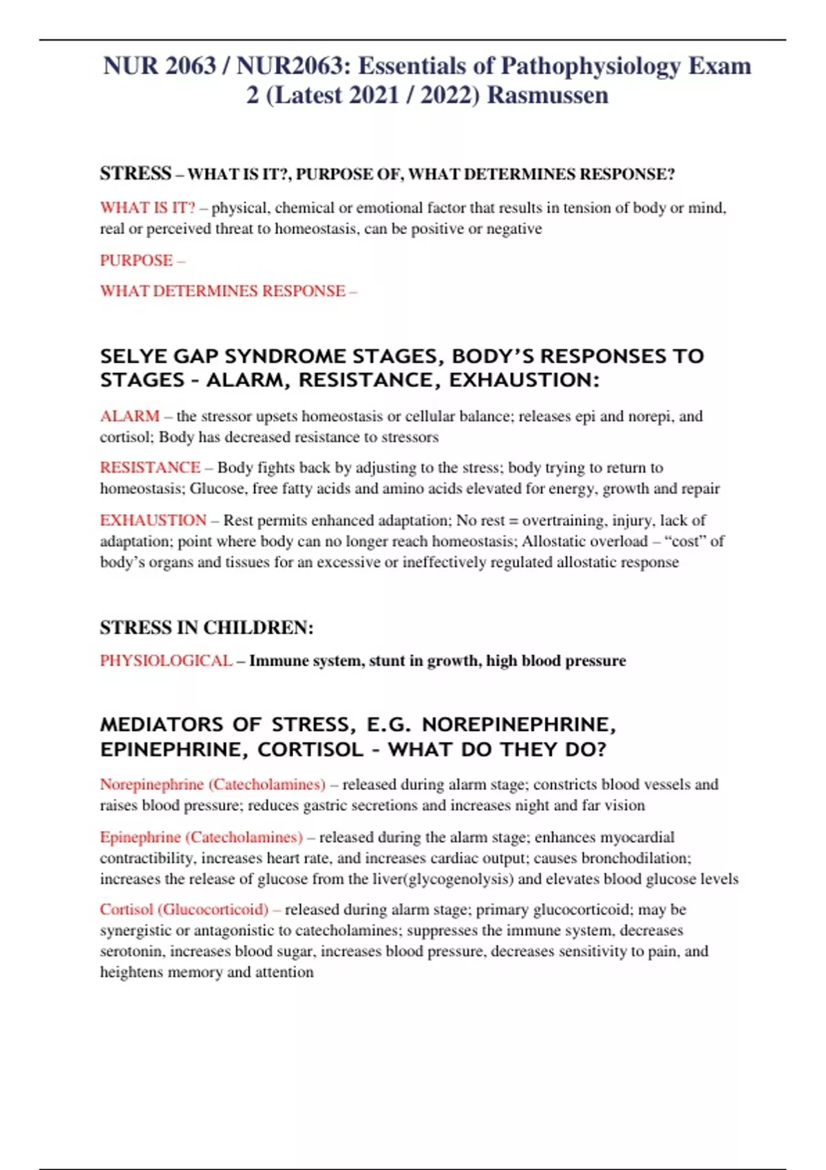 NUR2063 Essentials of Pathophysiology Exam 2 Latest updated 2023 Rasmussen.