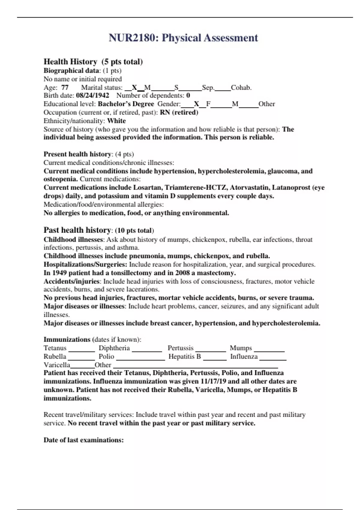 NUR2180 Physical Assessment Health History.