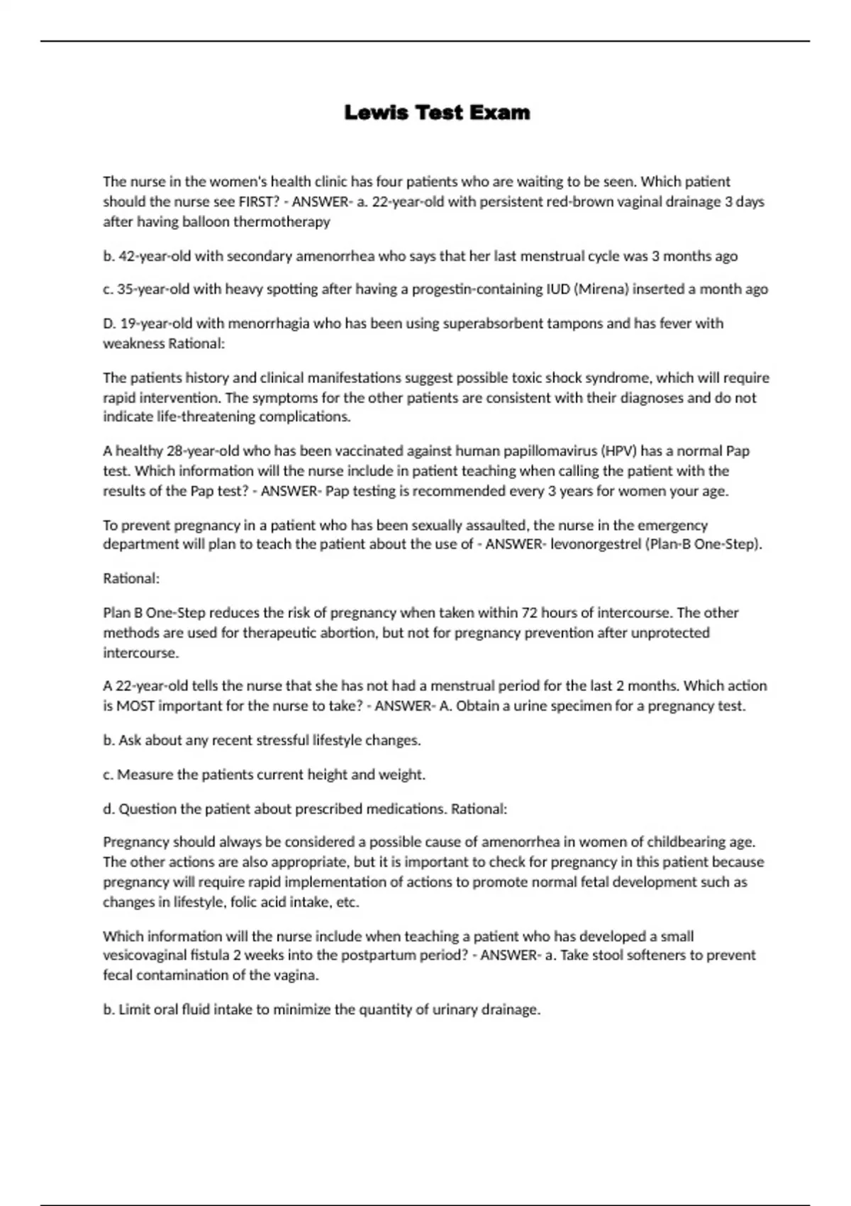 Exam of 14 pages for the course Lewis's Medical-Surgical Nursing 12th Ed at Lewis's Medical-Surgical Nursing 12th Ed (Lewis Test Exam)