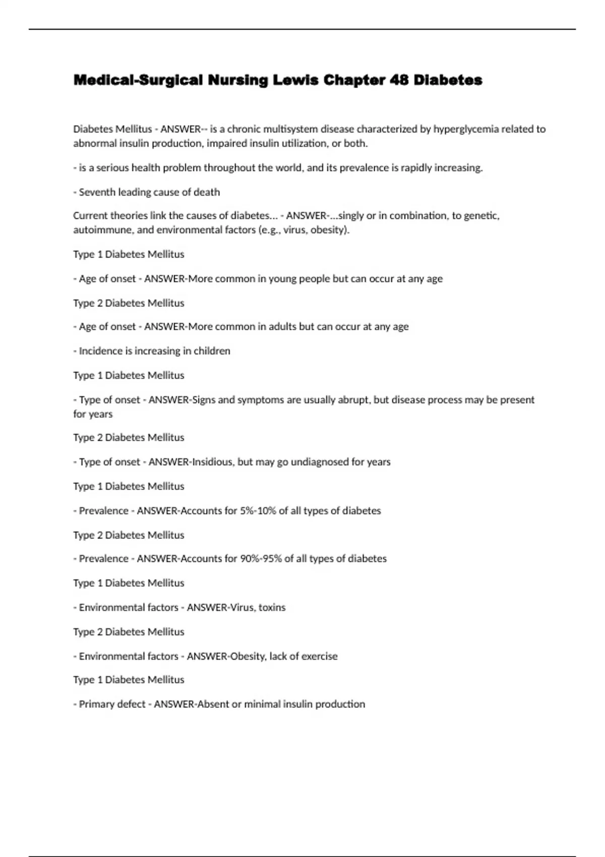 Medical-Surgical Nursing Lewis Chapter 48 Diabetes