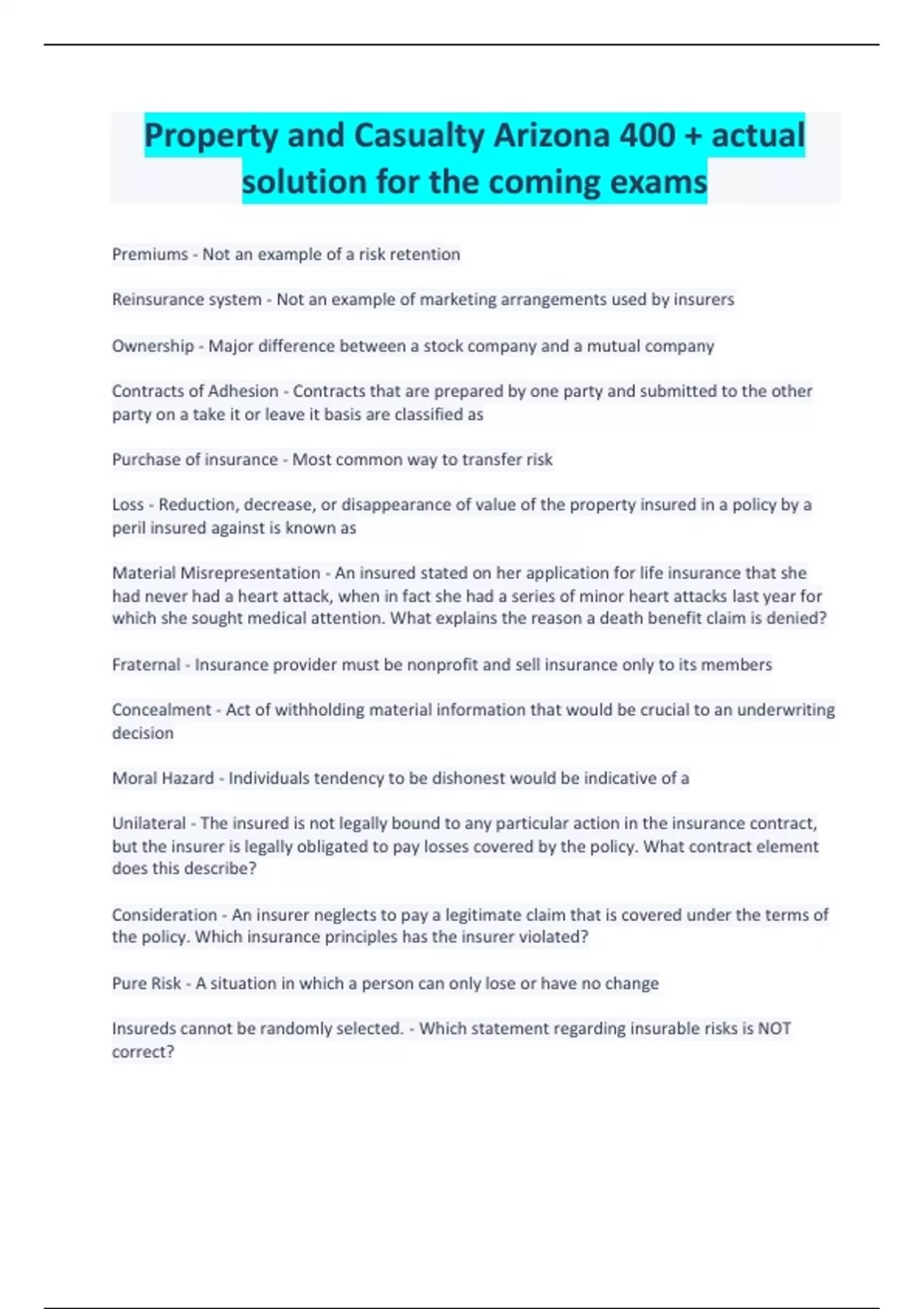 Property and Casualty Arizona 400 + actual solution for the coming exams
