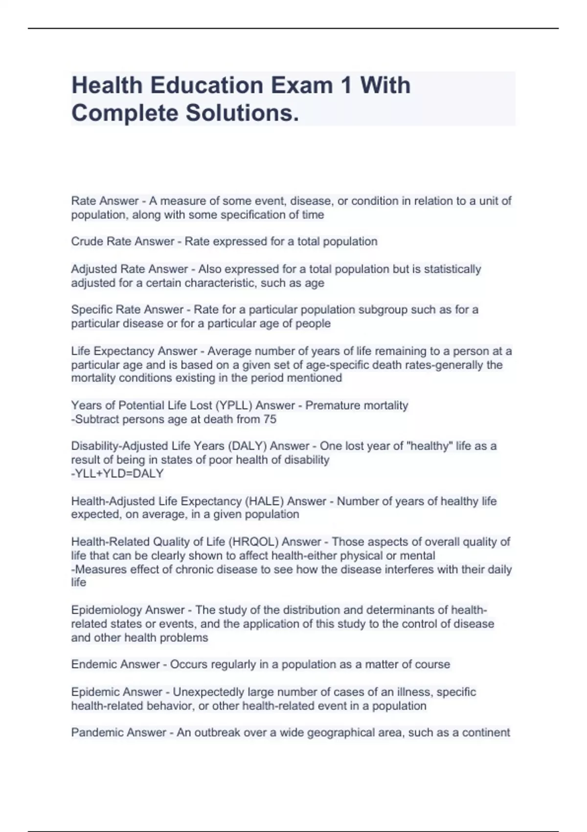 Health Education Exam 1 With Complete Solutions.