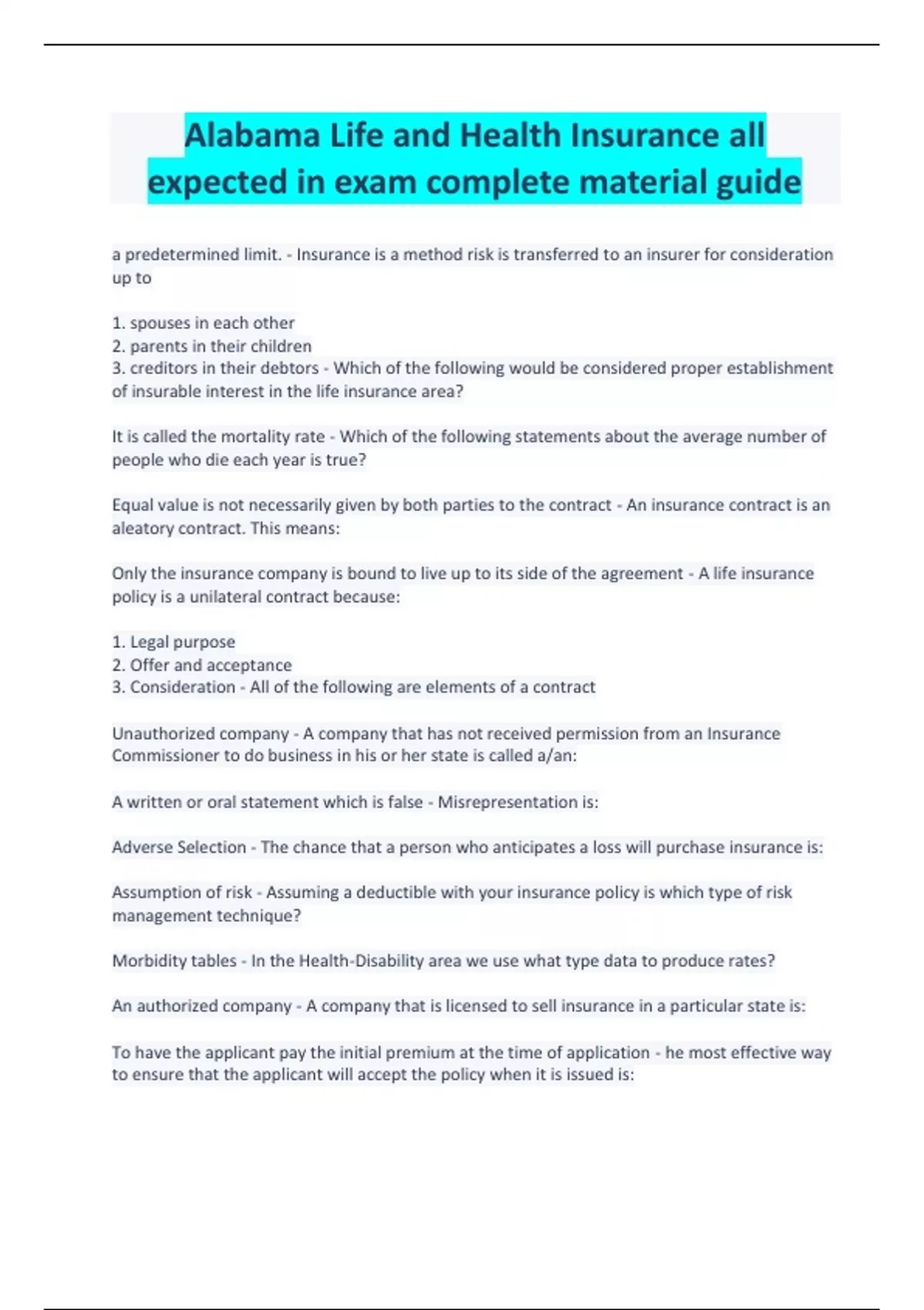 Alabama Life and Health Insurance all expected in exam complete material guide
