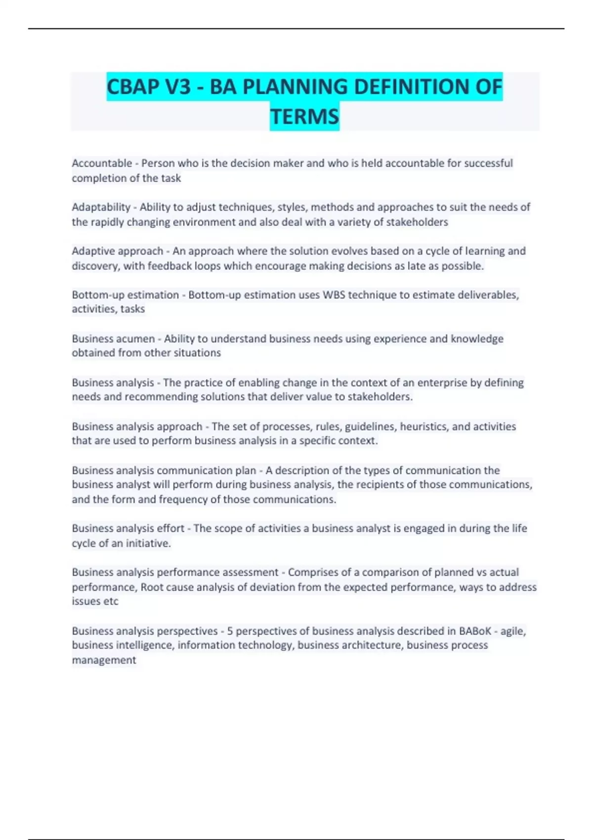 CBAP V3 - BA PLANNING DEFINITION OF TERMS