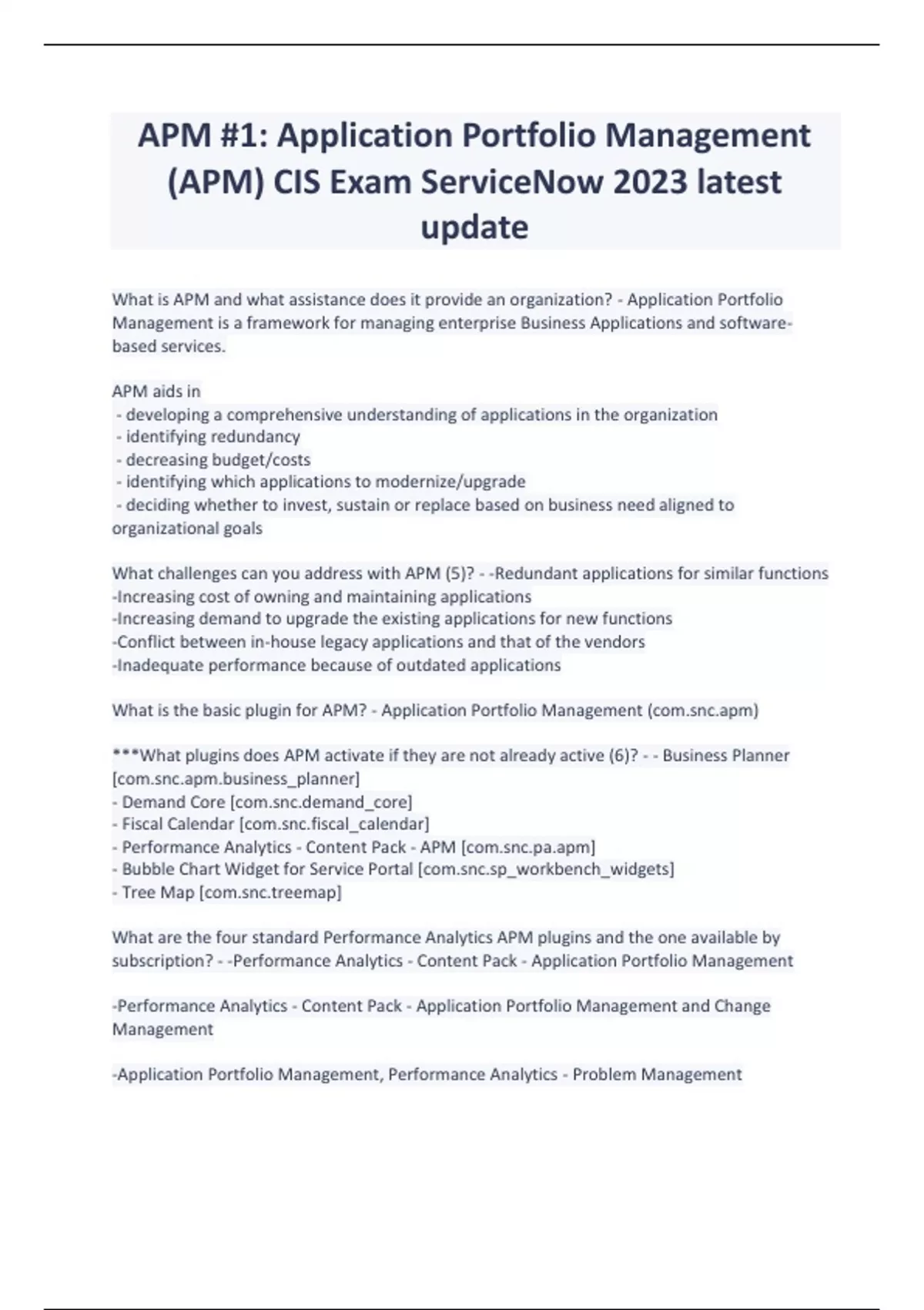 APM #1 Application Portfolio Management (APM) CIS Exam ServiceNow 2023 latest update