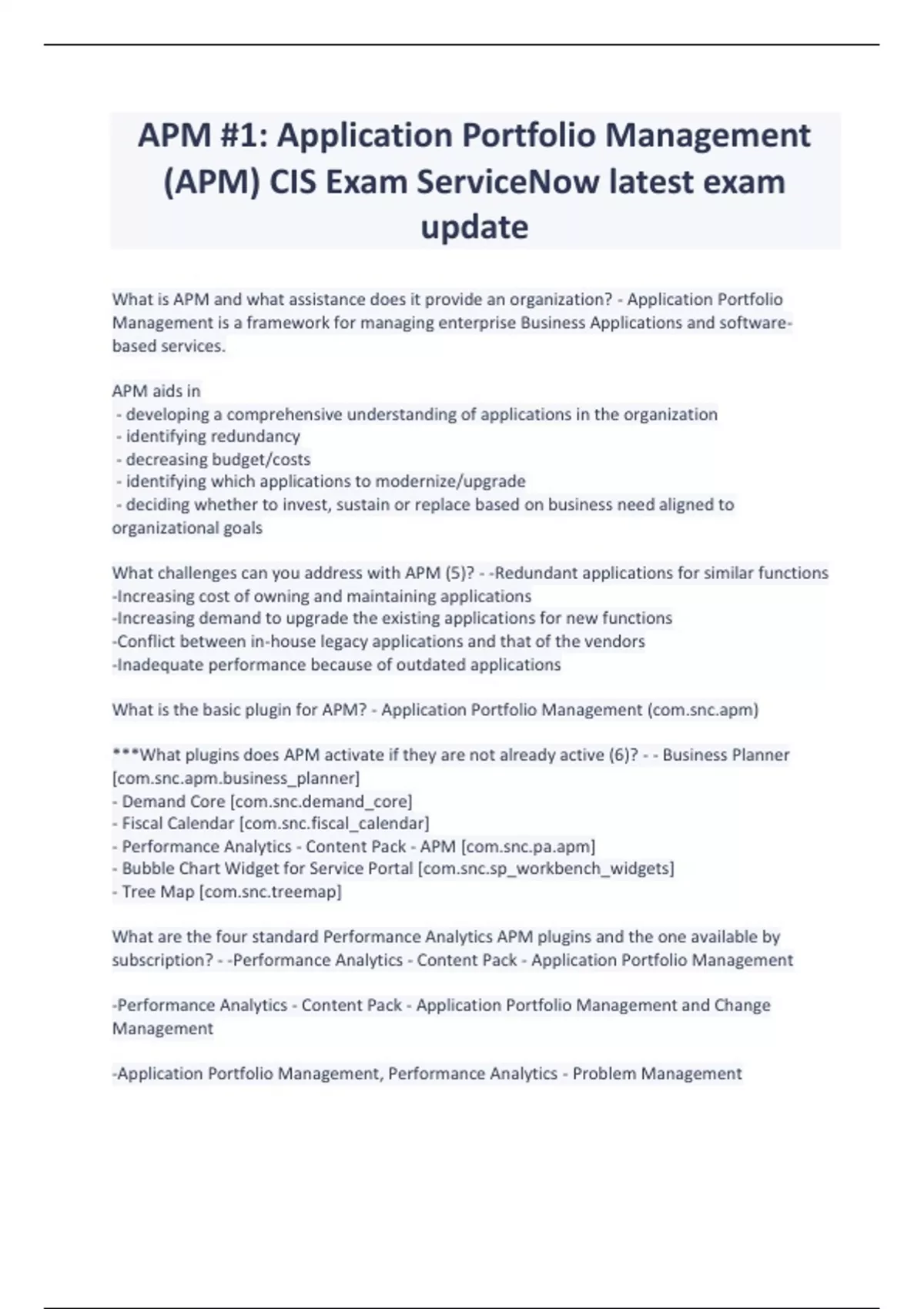 APM #1 Application Portfolio Management (APM) CIS Exam ServiceNow latest exam update