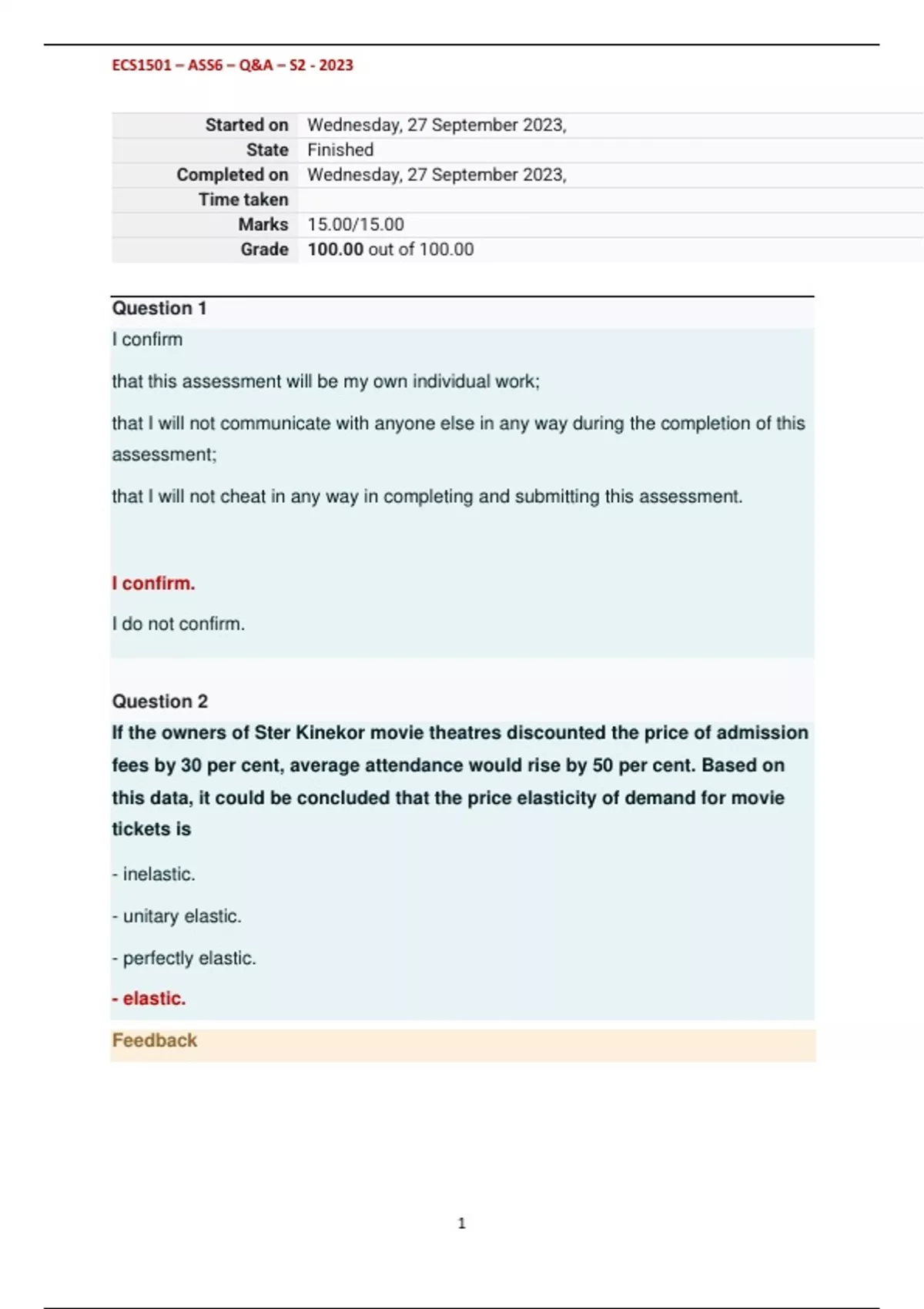 ECS1501 – ASS6 – Q&A – S2 - 2023