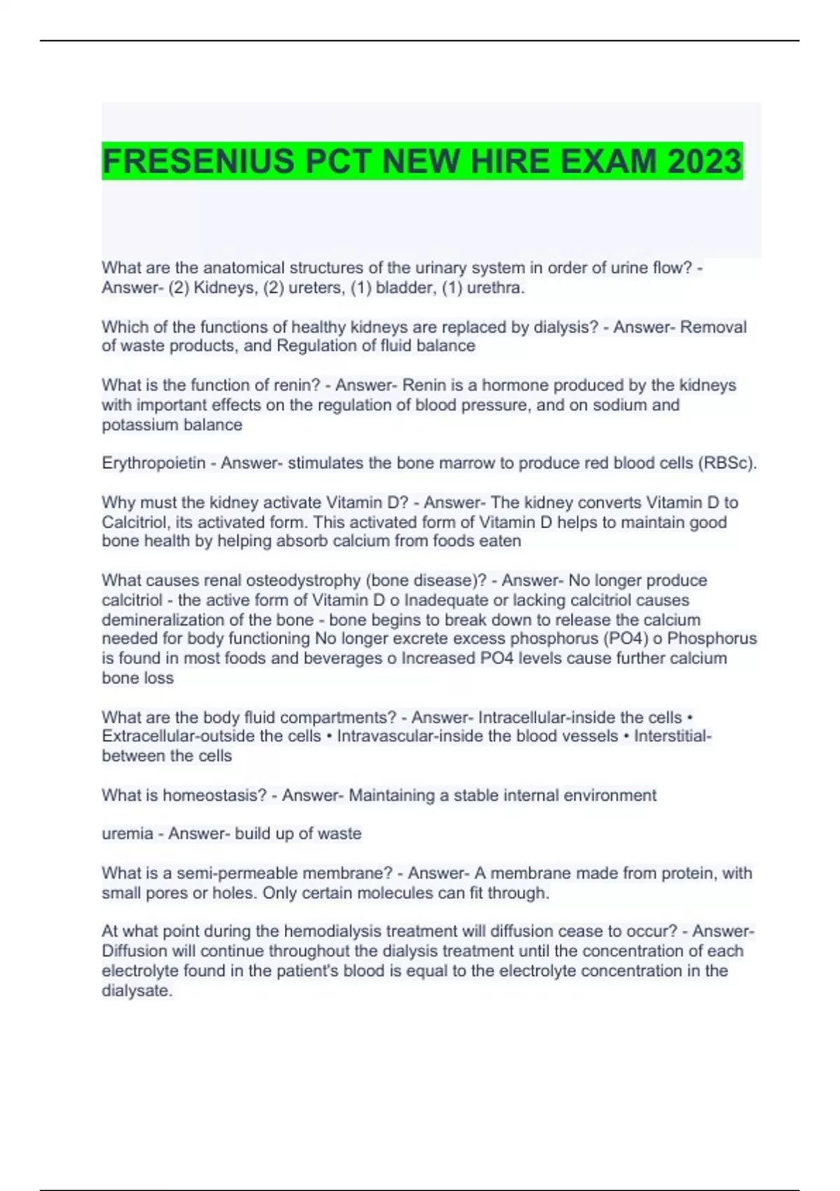 FRESENIUS PCT NEW HIRE EXAM 2023