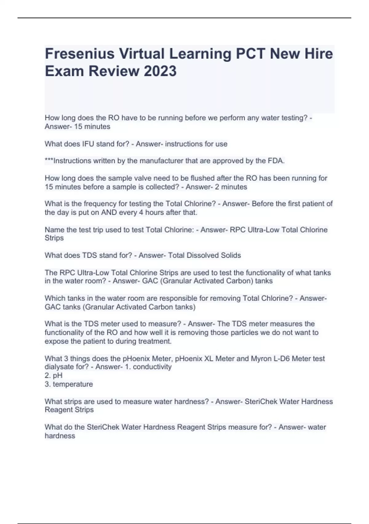 Fresenius Virtual Learning PCT New Hire Exam Review 2023