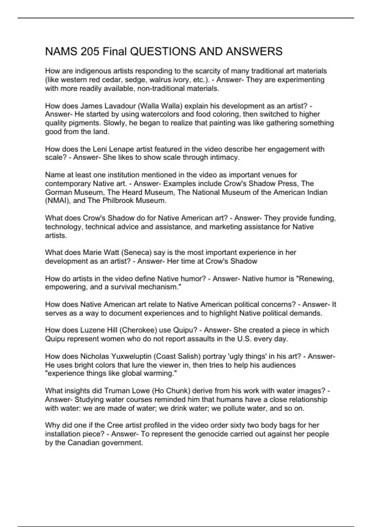NAMS 205 Final QUESTIONS AND ANSWERS