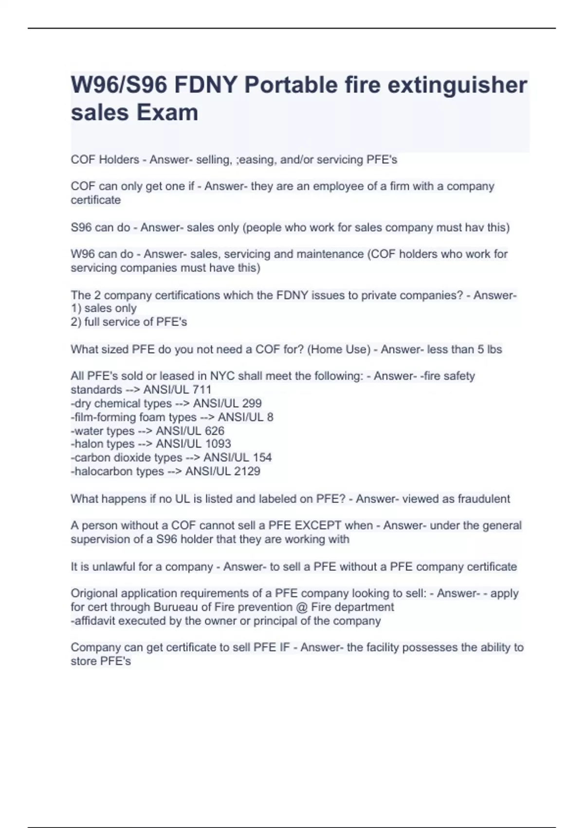 W96/S96 FDNY Portable fire extinguisher sales Exam
