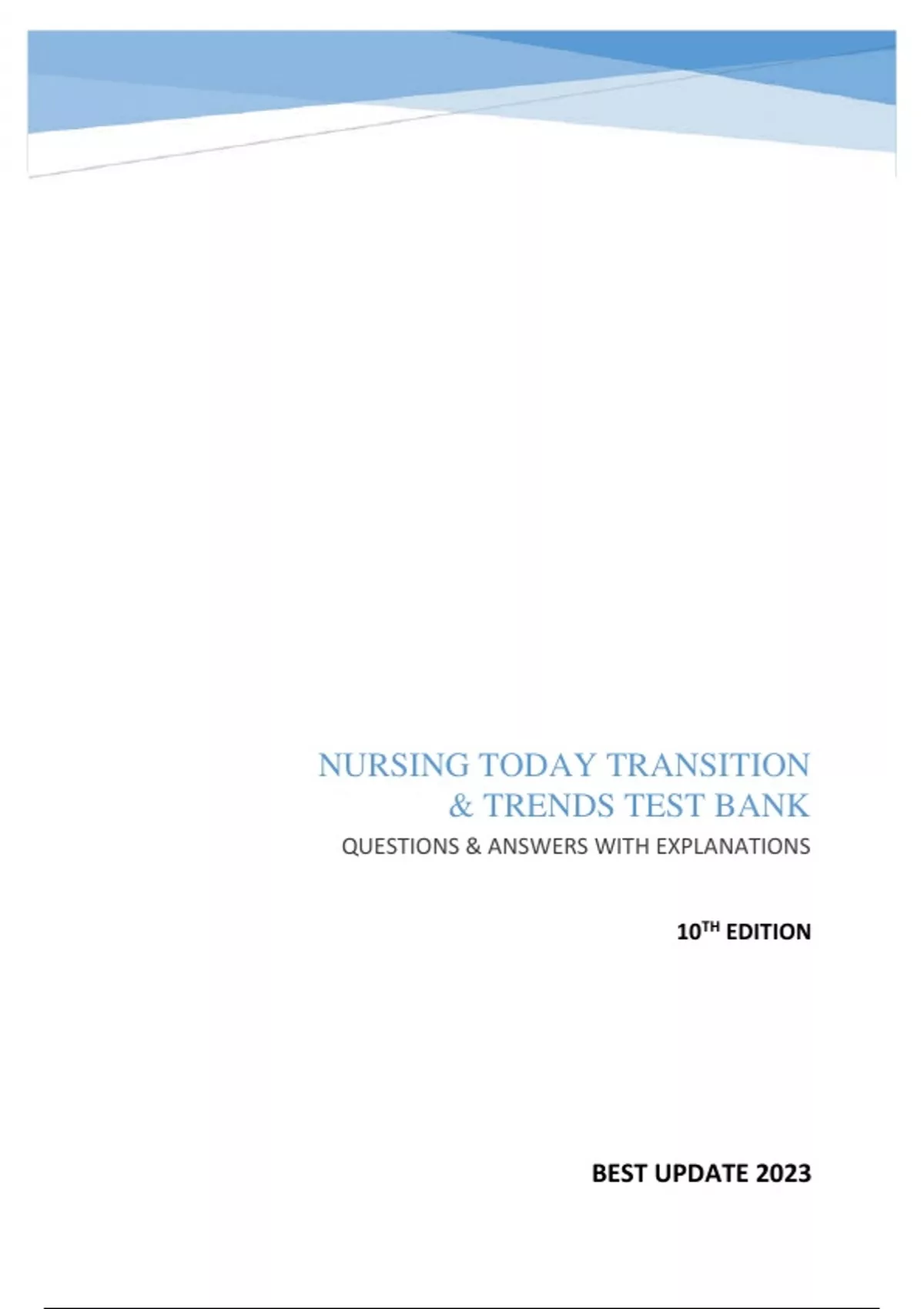 NURSING TODAY TRANSITION & TRENDS TEST BANK LATEST 2023