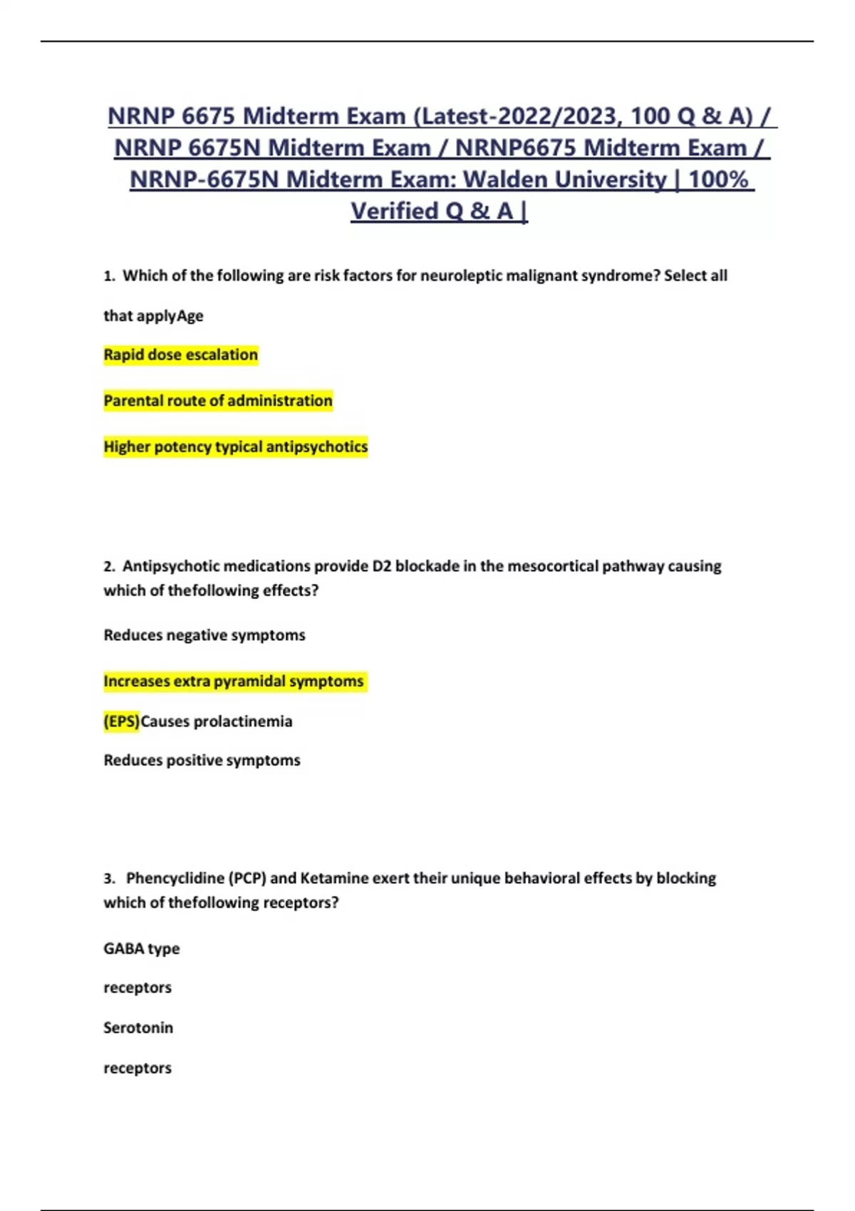 NRNP 6675 Midterm Exam (Latest-2022/2023, 100 Q & A) / NRNP 6675N Midterm Exam / NRNP6675 Midterm Exam / NRNP-6675N Midterm Exam: Walden University | 100% Verified Q & A |