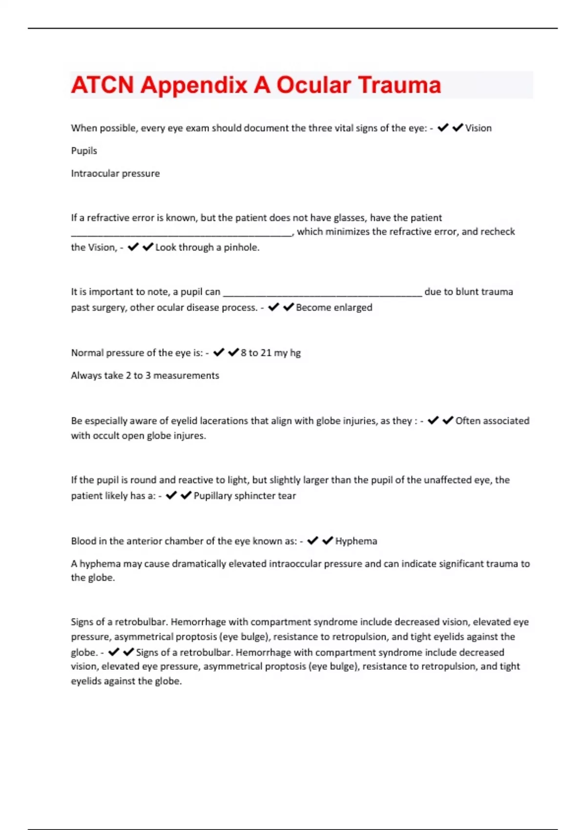 ATCN Appendix A Ocular Trauma Exam Solved 100% Correct!!