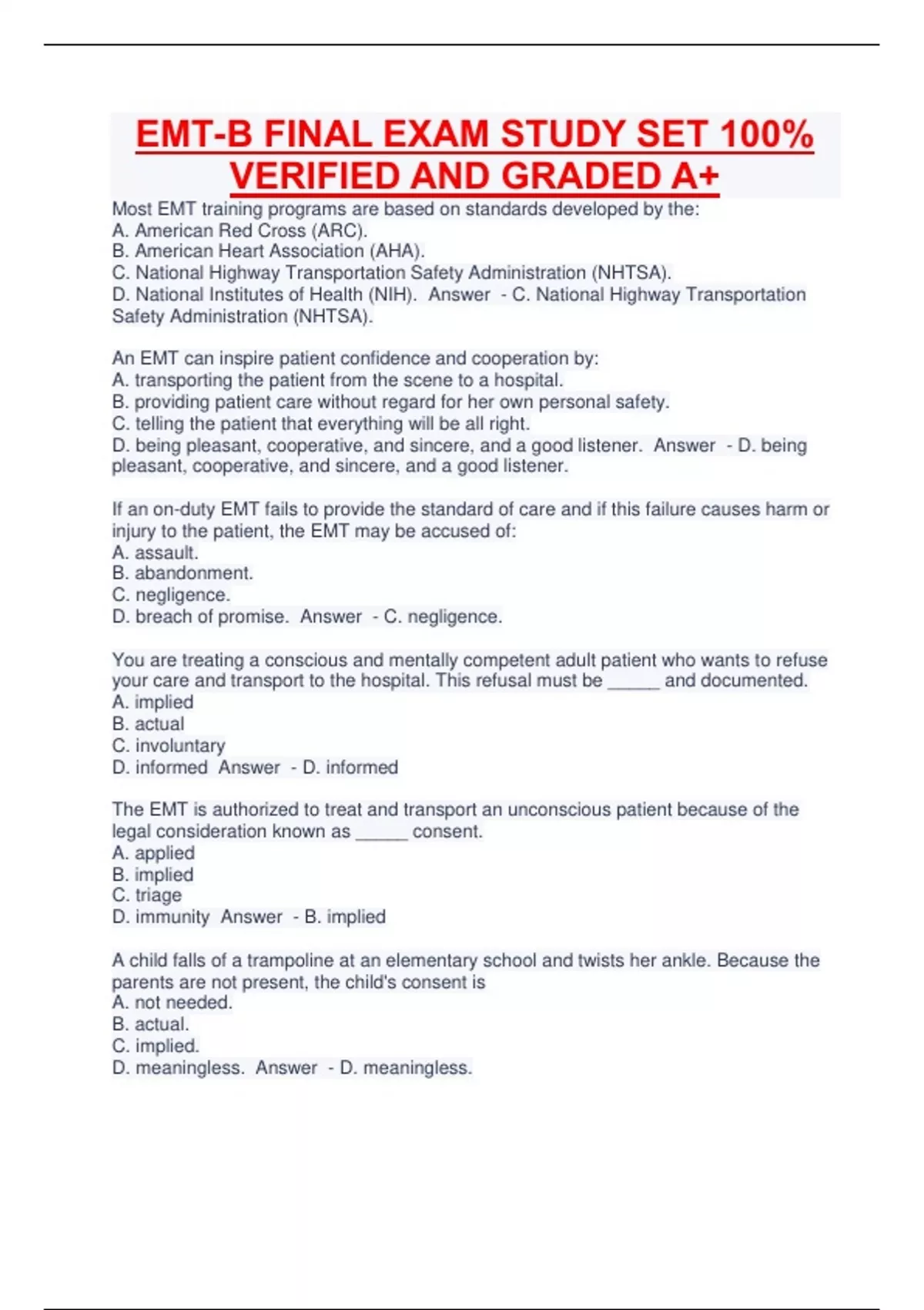 EMT-B FINAL EXAM STUDY SET 100% VERIFIED AND GRADED A+ EMT-B FINAL EXAM STUDY SET 100% VERIFIED AND GRADED A+ EMT-B FINAL EXAM STUDY SET 100% VERIFIED AND GRADED A+ EMT-B FINAL EXAM STUDY SET 100% VERIFIED AND GRADED A+ EMT-B FINAL EXAM STUDY SET 100% VERIFIED AND GRADED A+ EMT-B FINAL EXAM STUDY SET 100% VERIFIED AND GRADED A+ EMT-B FINAL EXAM STUDY SET 100% VERIFIED AND GRADED A+ EMT-B FINAL EXAM STUDY SET 100% VERIFIED AND GRADED A+ EMT-B FINAL EXAM STUDY SET 100% VERIFIED AND GRADED A+ EMT-B FINAL EXAM STUDY SET 100% VERIFIED AND GRADED A+ EMT-B FINAL EXAM STUDY SET 100% VERIFIED AND GRADED A+ EMT-B FINAL EXAM STUDY SET 100% VERIFIED AND GRADED A+ EMT-B FINAL EXAM STUDY SET 100% VERIFIED AND GRADED A+ EMT-B FINAL EXAM STUDY SET 100% VERIFIED AND GRADED A+ EMT-B FINAL EXAM STUDY SET 100% VERIFIED AND GRADED A+ EMT-B FINAL EXAM STUDY SET 100% VERIFIED AND GRADED A+
