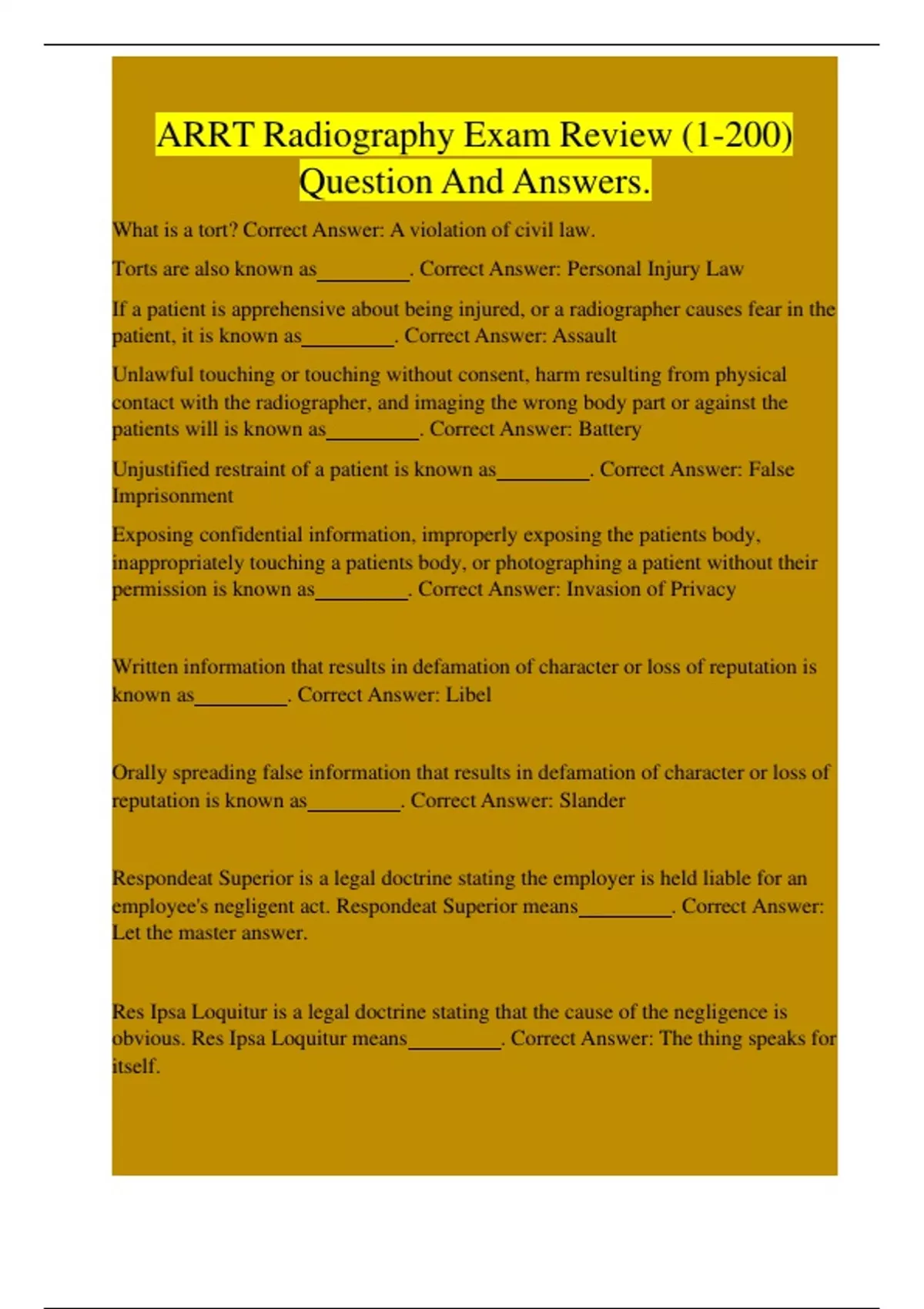 ARRT Radiography Exam Review ARRT Radiography Exam Review ARRT Radiography Exam Review