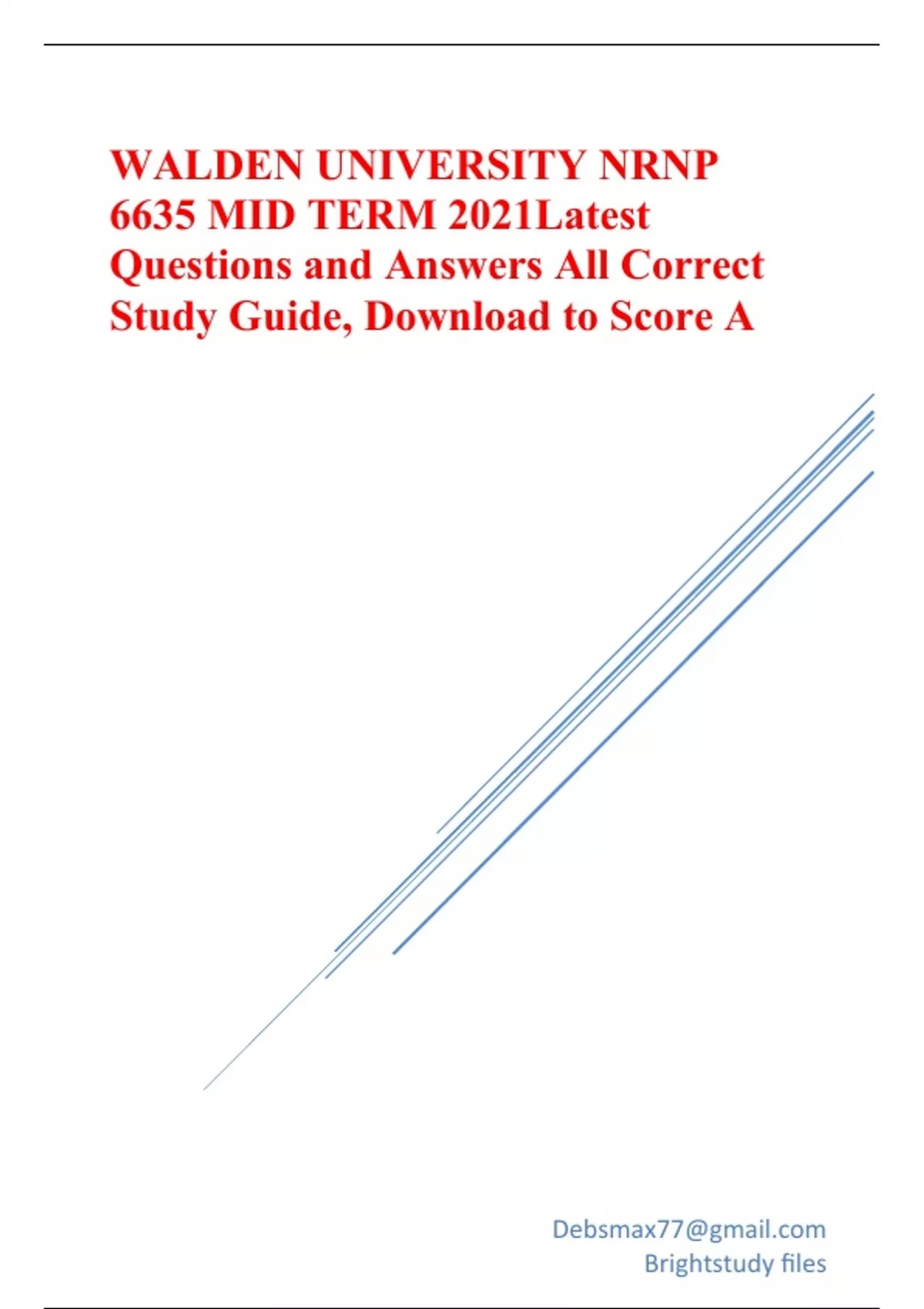 WALDEN UNIVERSITY NRNP 6635 (MID TERM) Latest Questions and Answers. Well elaborated Study Guide 2023