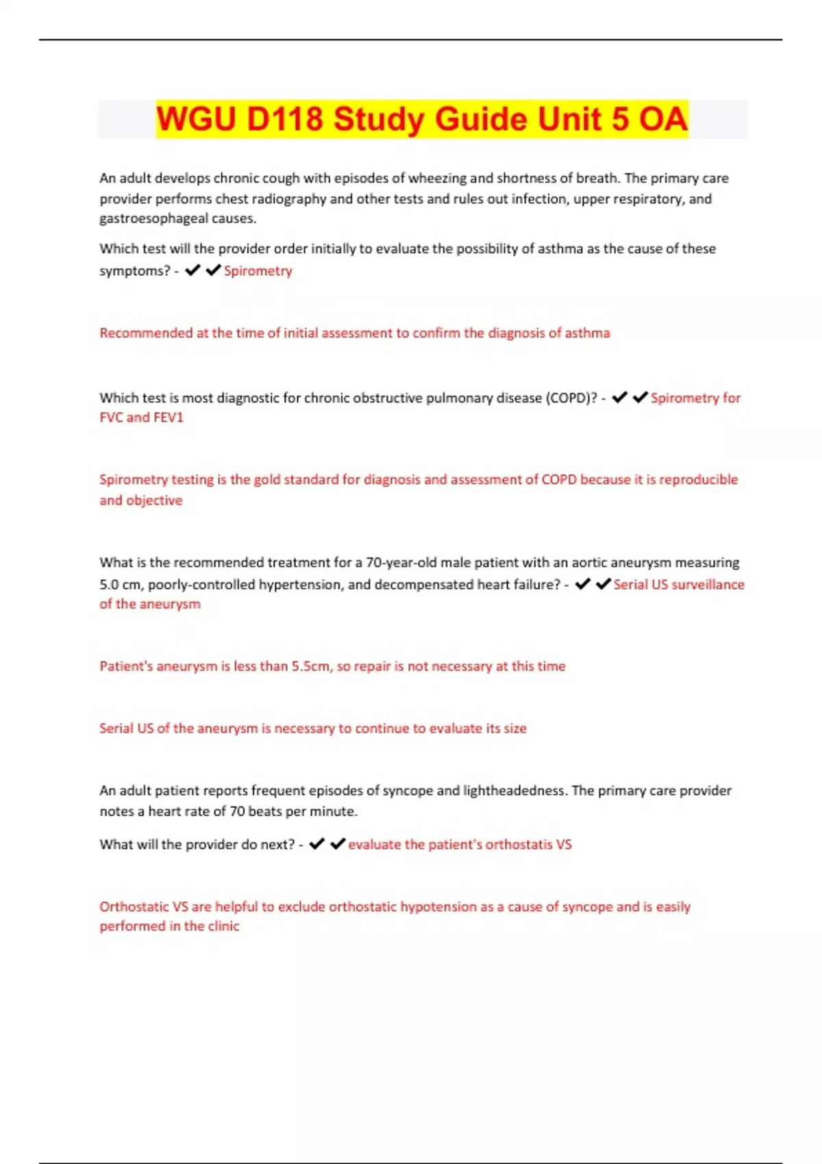 WGU D118 Study Guide Unit 5 OA | Latest 2023/24 | Updated & Verified | Guaranteed Success
