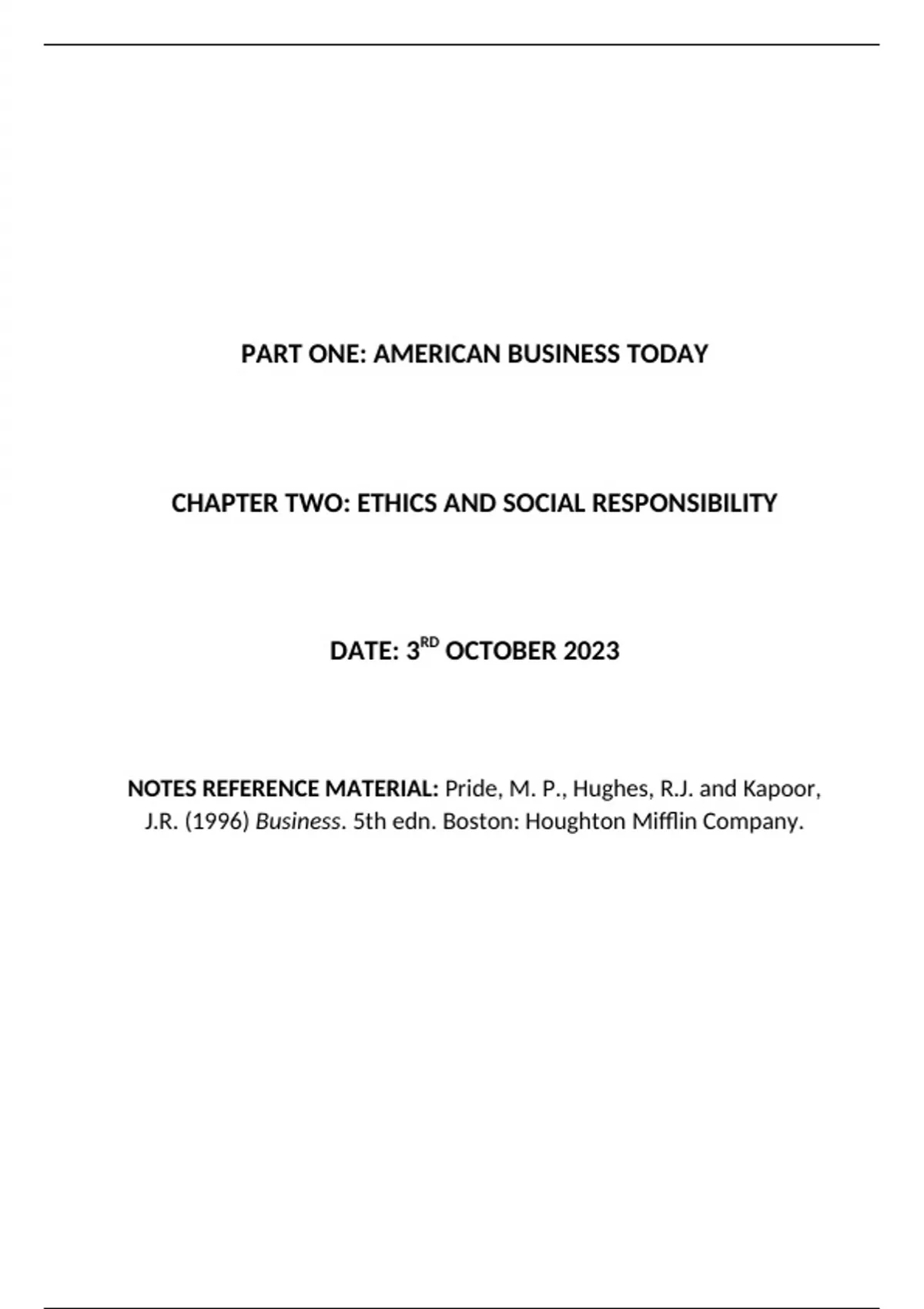 Summary PART ONE: AMERICAN BUSINESS TODAY (CHAPTER TWO: ETHICS AND SOCIAL RESPONSIBILITY)