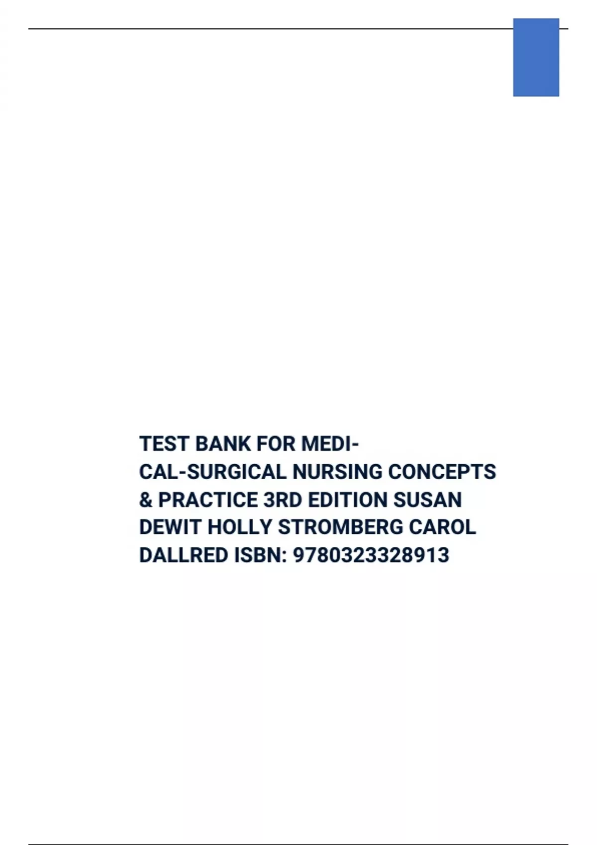 TEST BANK FOR MEDICAL-SURGICAL NURSING CONCEPTS & PRACTICE 3RD EDITION SUSAN DEWIT HOLLY STROMBERG CAROL DALLRED ISBN: 9780323328913