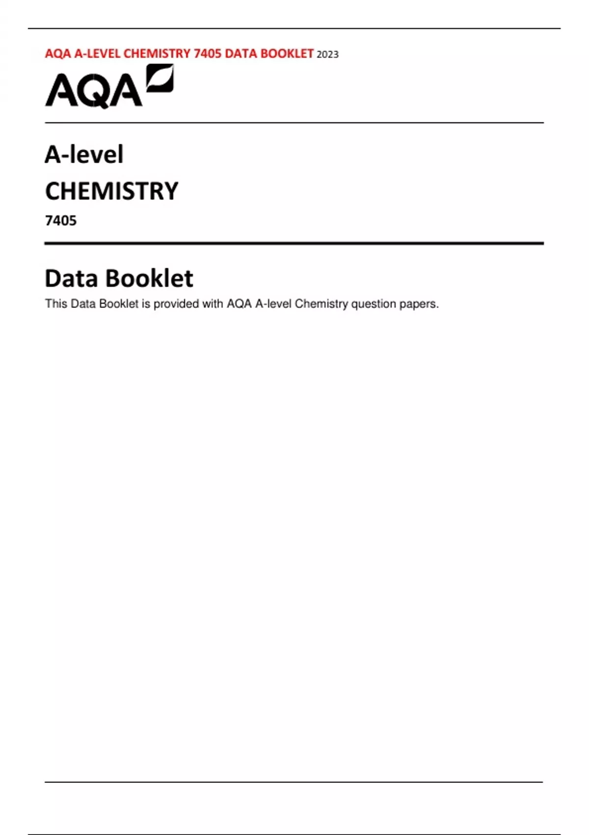 AQA A-LEVEL CHEMISTRY 7405 DATA BOOKLET 2023