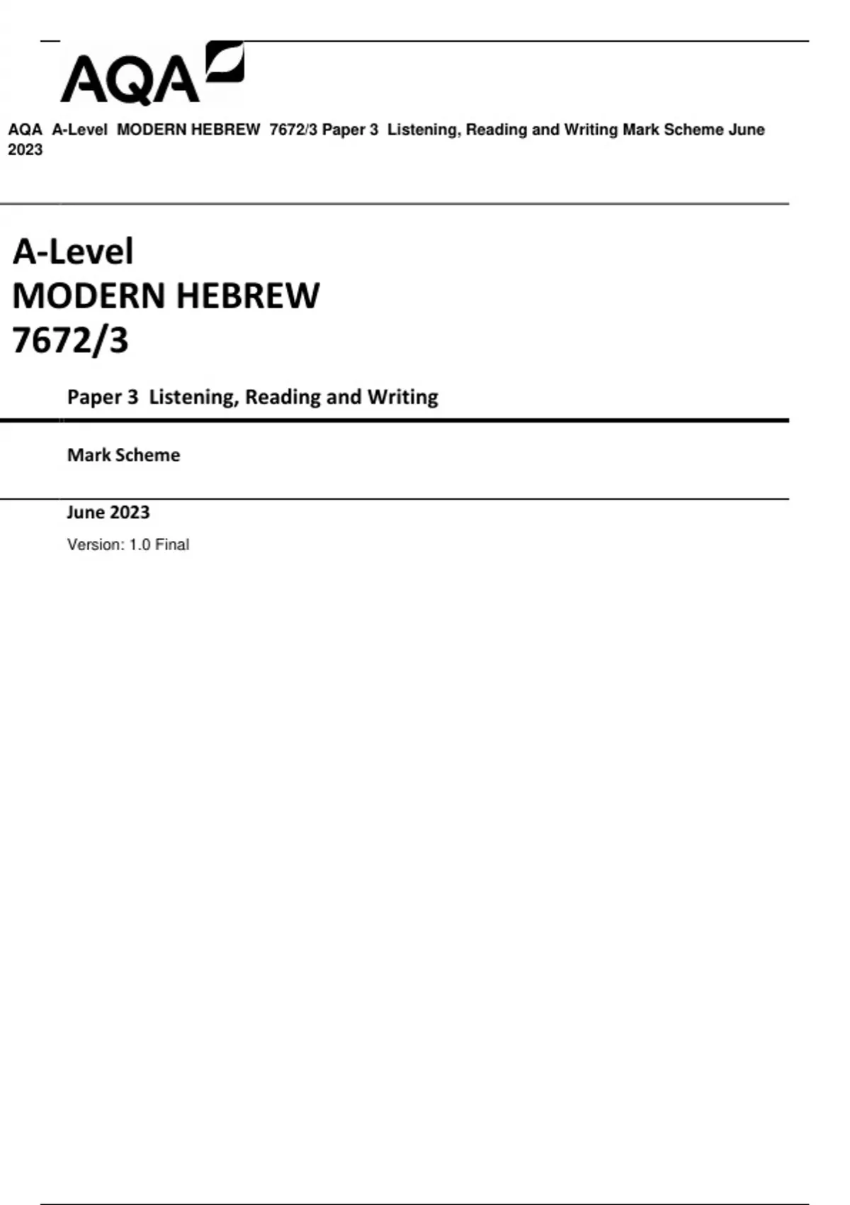 AQA A-Level MODERN HEBREW 7672/3 Paper 3 Listening, Reading and Writing Mark Scheme June 2023