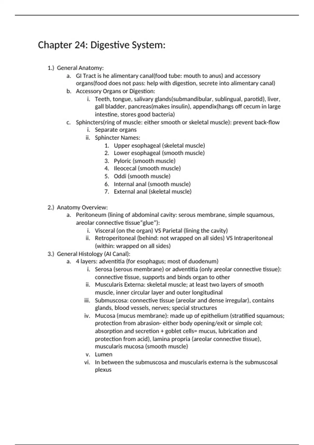 in depth class notes on the digestive system for anatomy and physiology
