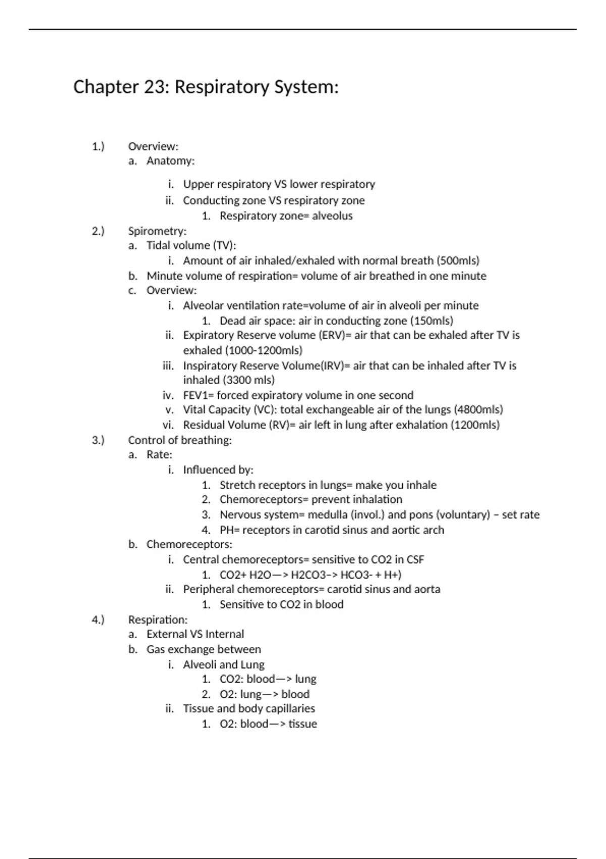 In depth notes on the respiratory system for anatomy and physiology.