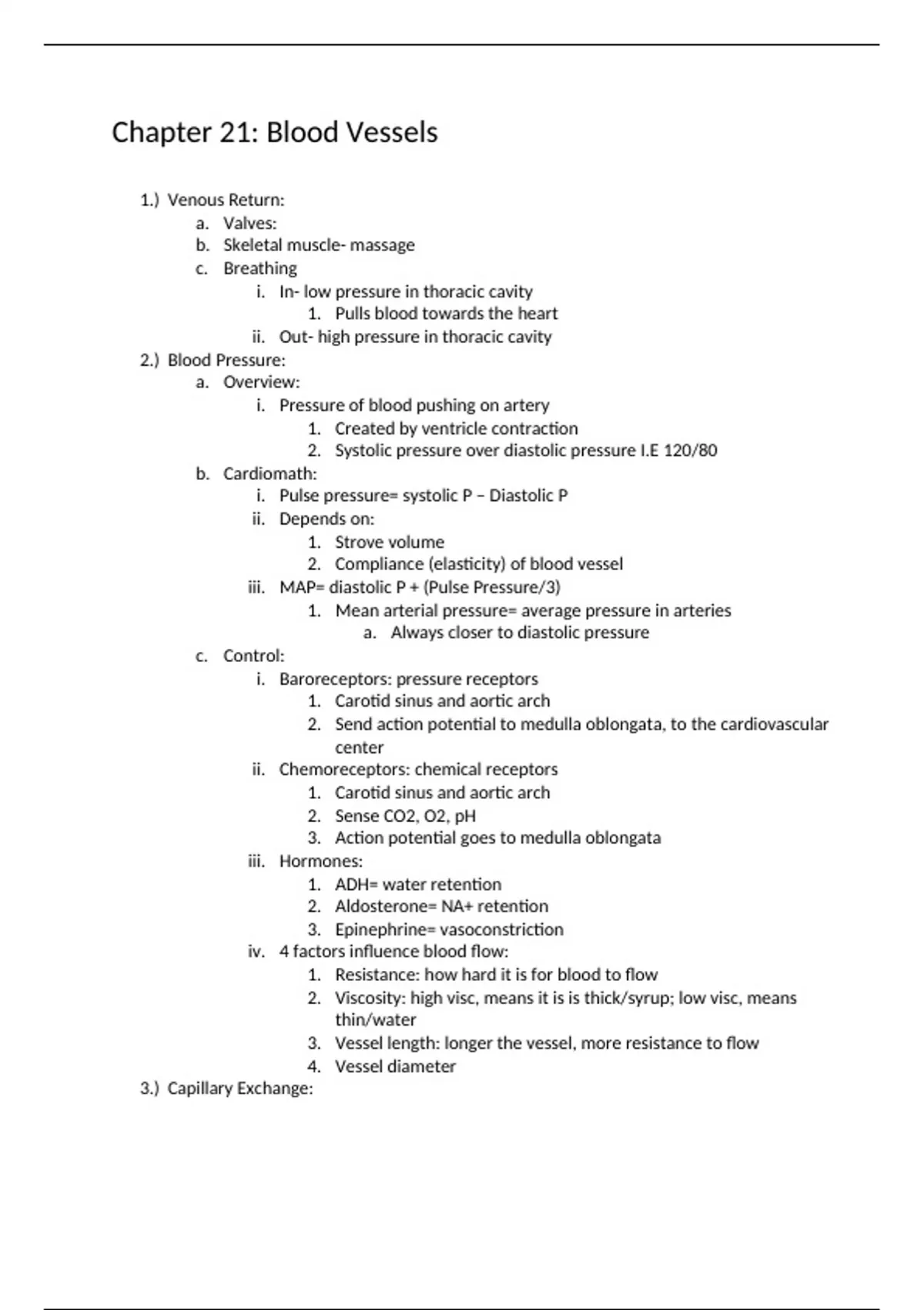 In depth notes from class powerpoints about the blood vessels in our body.