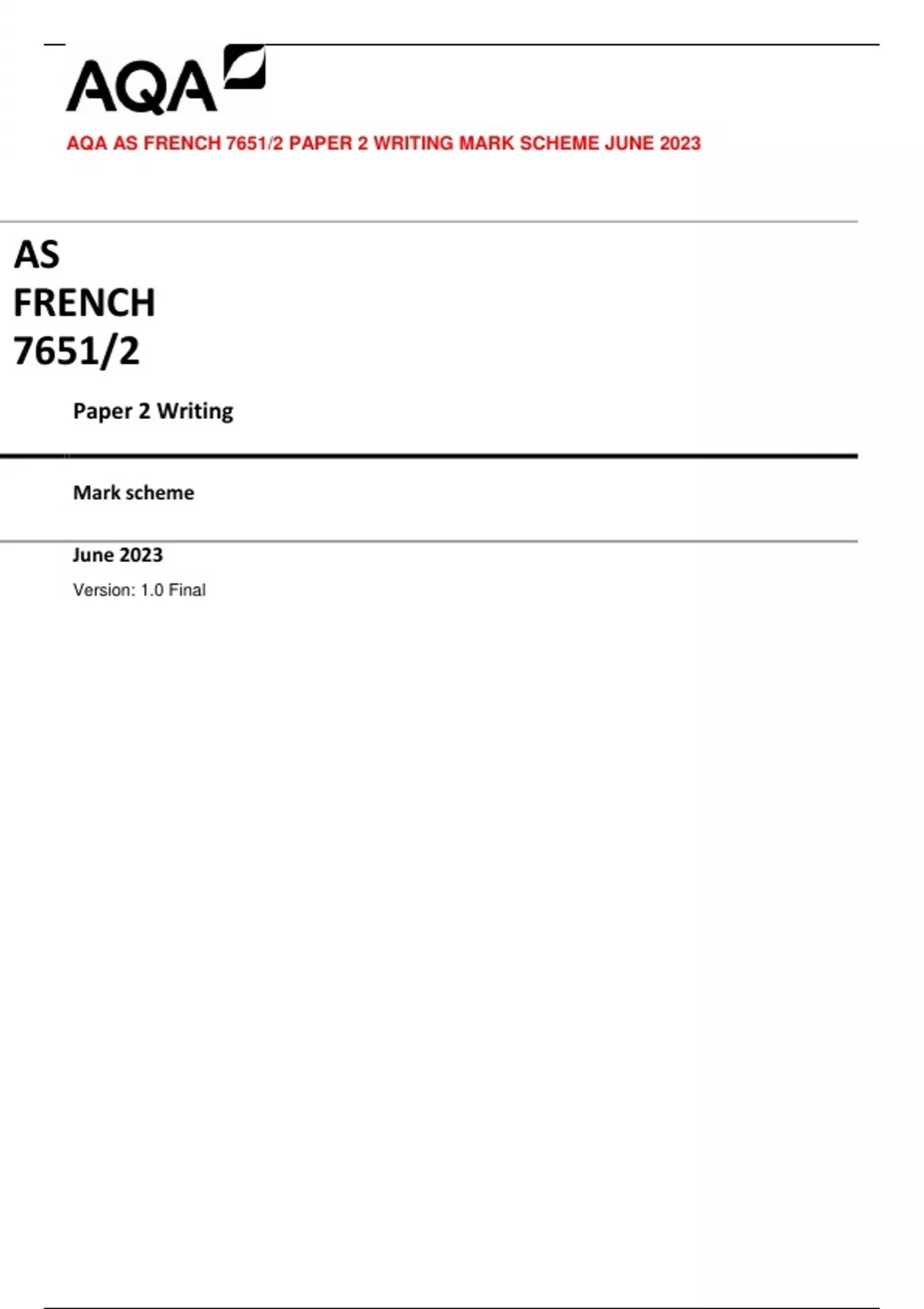 AQA AS FRENCH 7651/2 PAPER 2 WRITING MARK SCHEME JUNE 2023