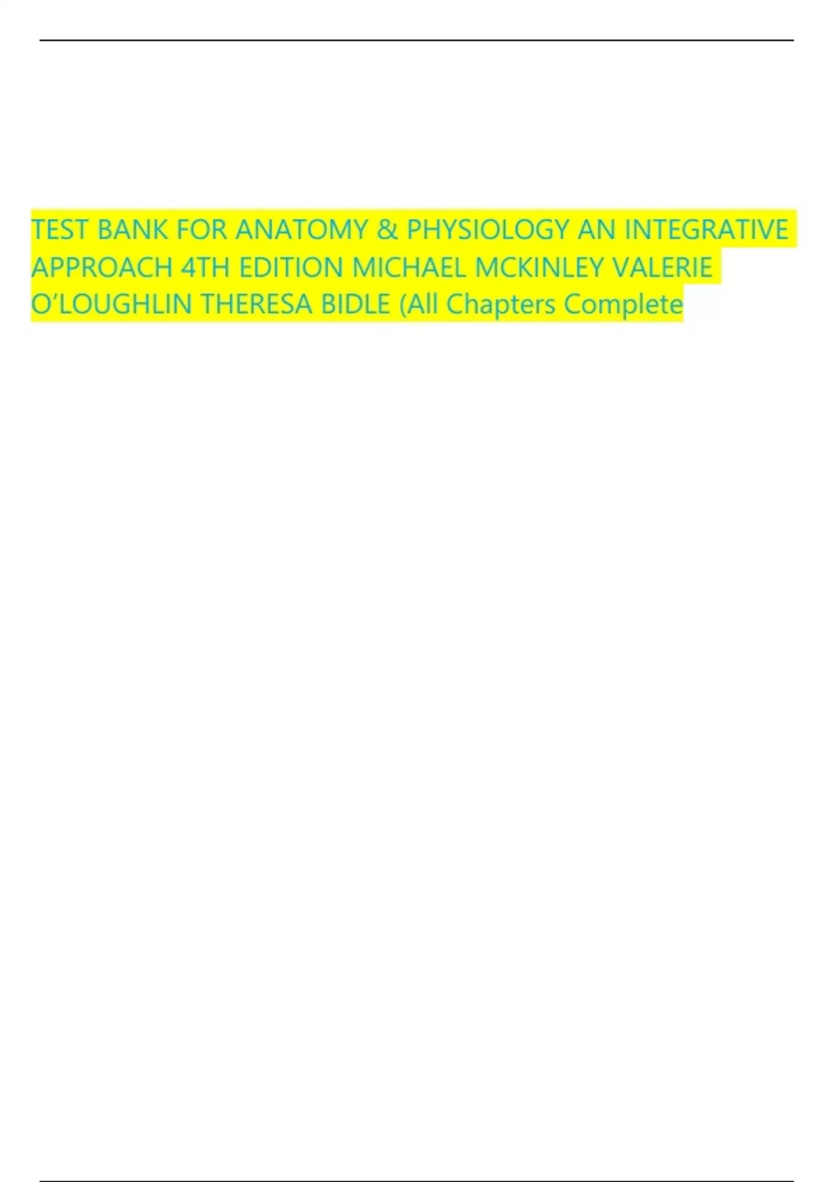 TEST BANK FOR ANATOMY & PHYSIOLOGY AN INTEGRATIVE APPROACH 4TH EDITION MICHAEL MCKINLEY VALERIE O’LOUGHLIN THERESA BIDLE (All Chapters Complete