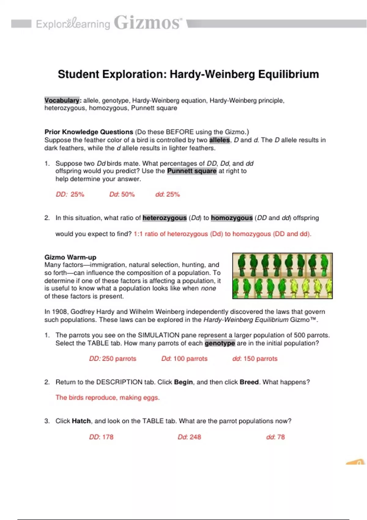 GIZMOS Student Exploration Hardy-Weinberg Equilibrium
