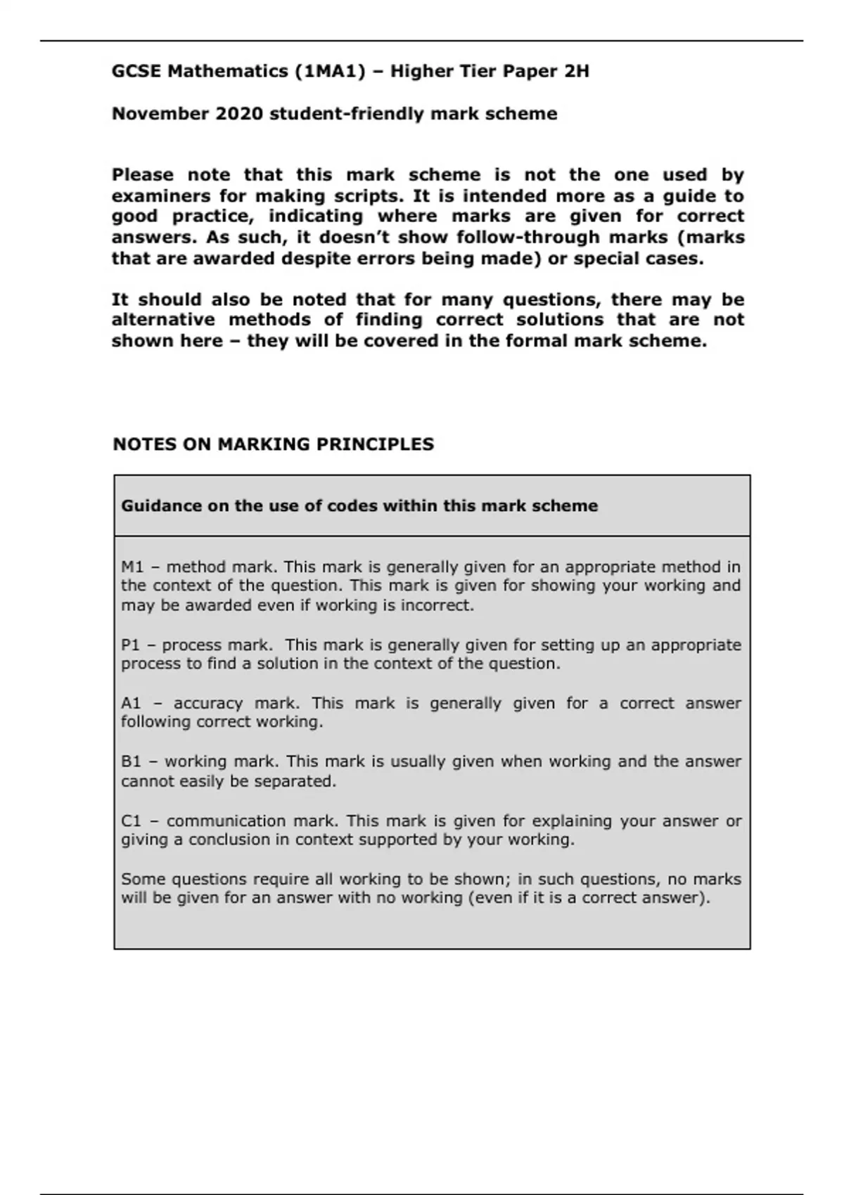 GCSE Mathematics (1MA1) – Higher Tier Paper 2H